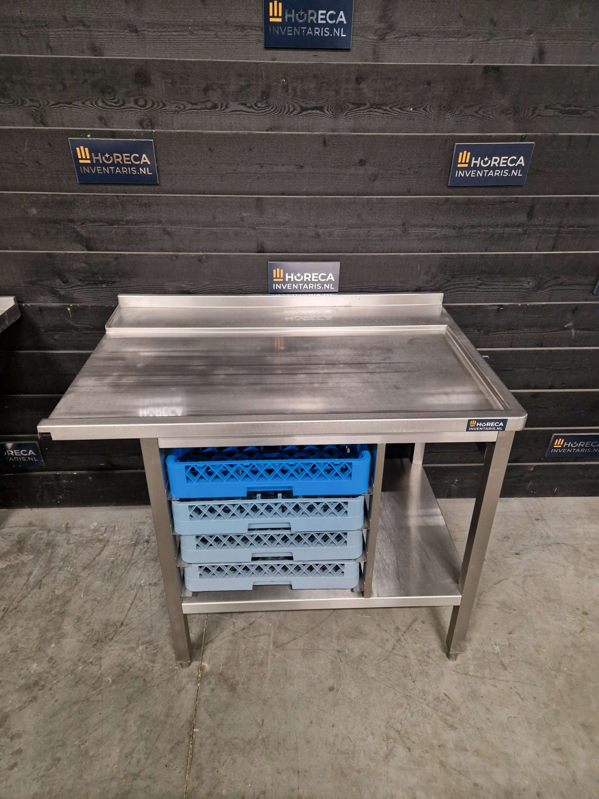 De combinatie van een ruime linker- en rechtertafel zorgt voor een logische doorstroom van vuile naar schone vaat. Het duurzame RVS-materiaal is bestand tegen intensief gebruik en eenvoudig schoon te houden, wat bijdraagt aan optimale hygiëne.