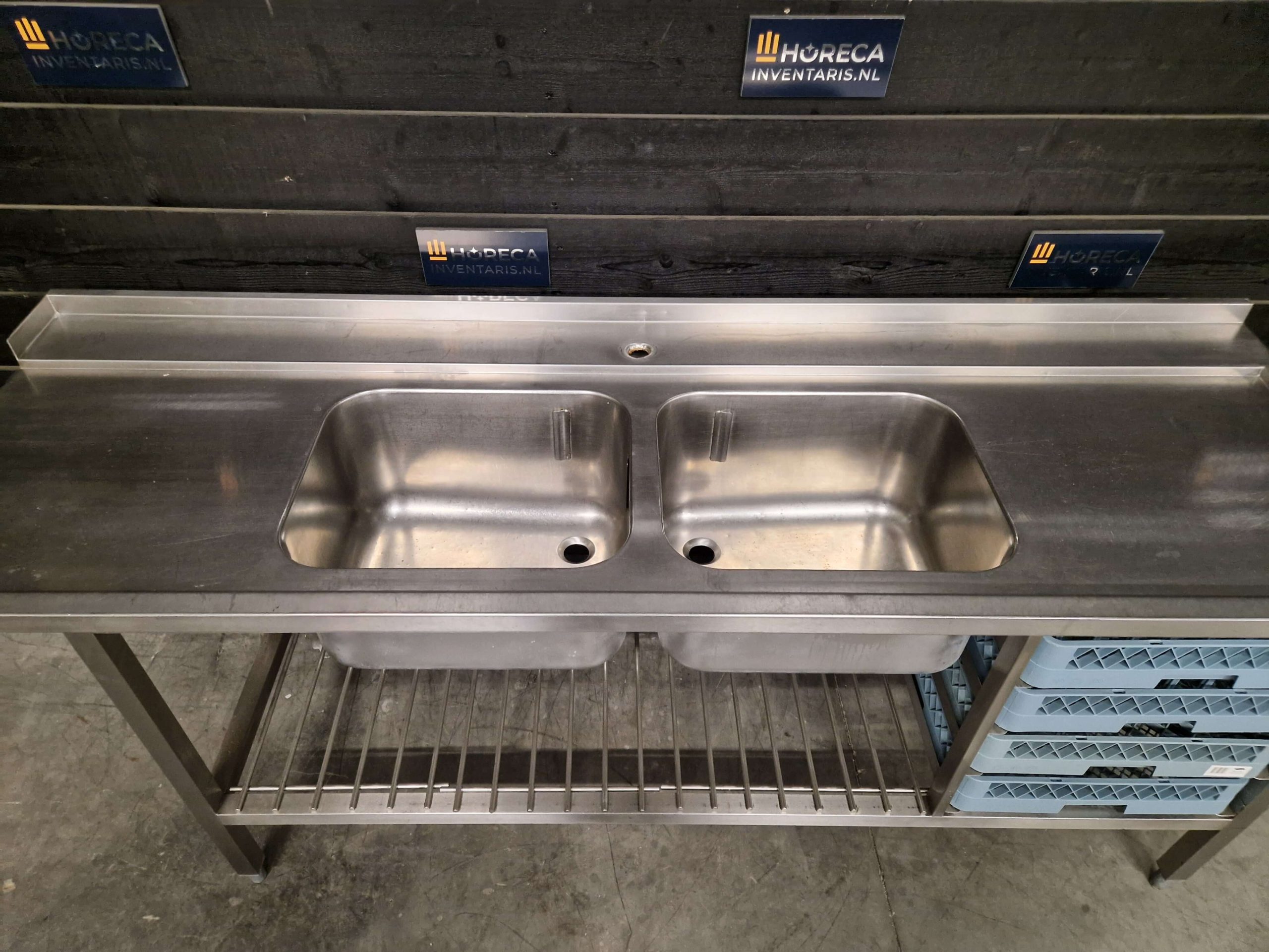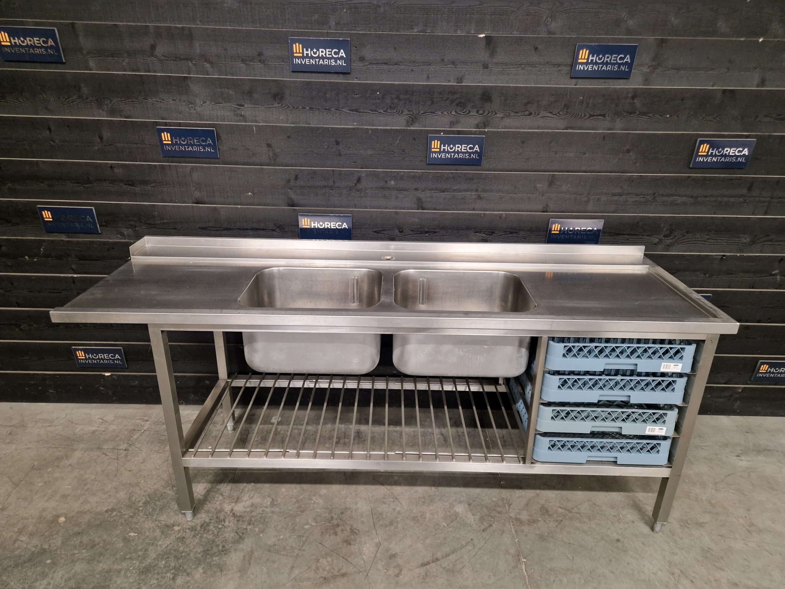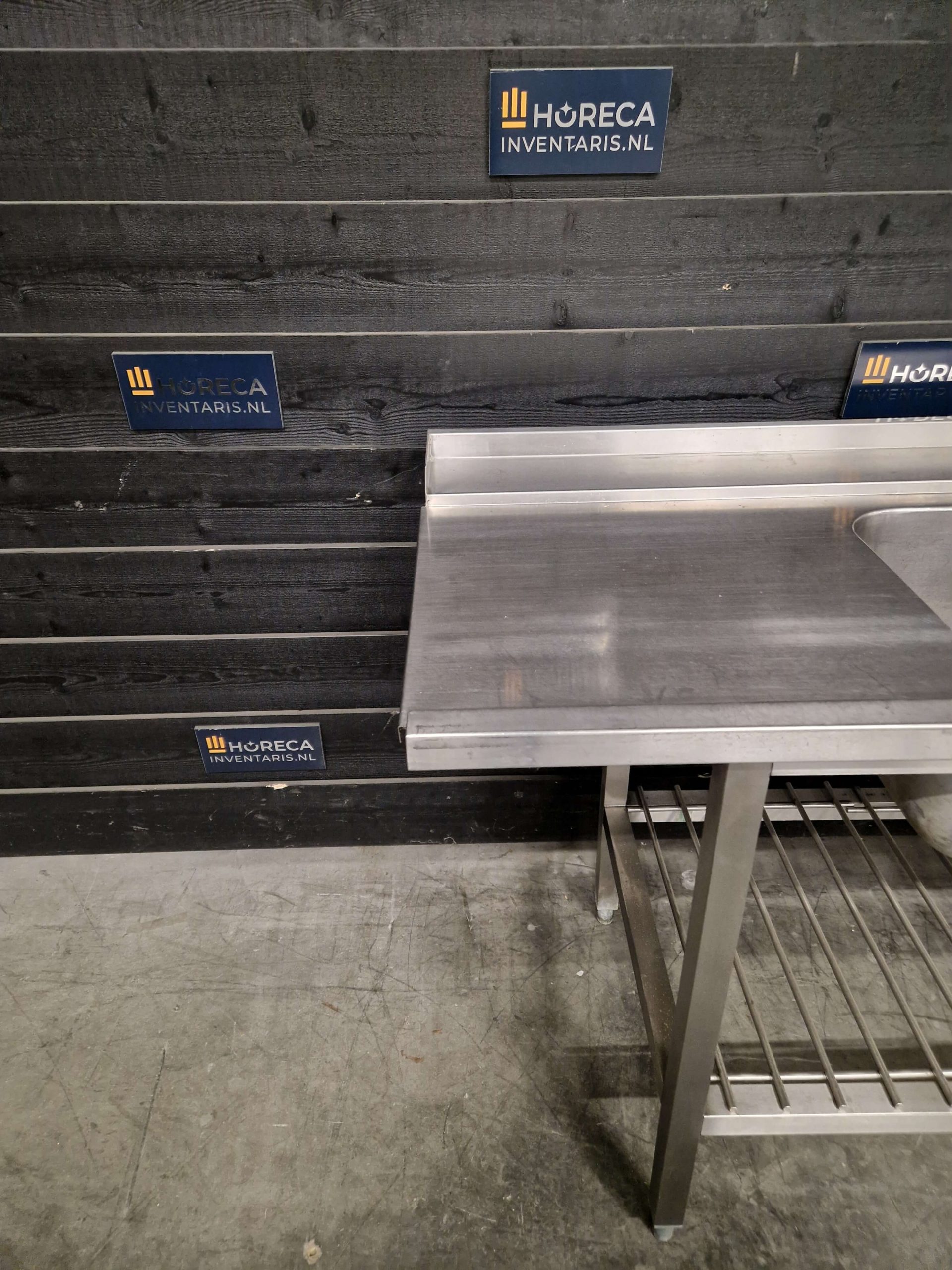 De tafel is volledig uitgevoerd in RVS en geschikt voor intensief dagelijks gebruik. De spoelbak maakt het eenvoudig om servies voor te spoelen voordat het de vaatwasser ingaat.