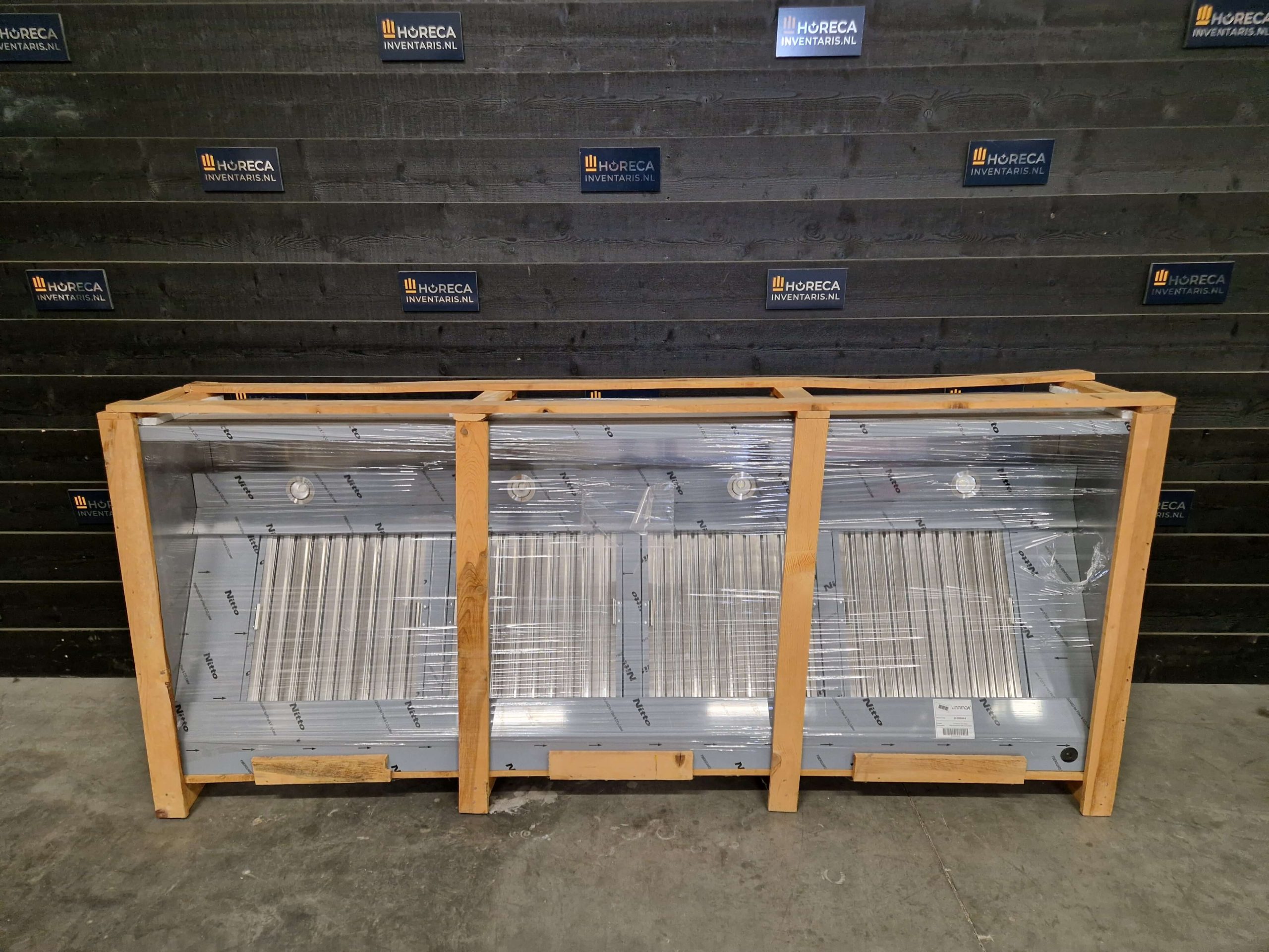 De afzuigkap EX-2509540-B is een robuust doosmodel, speciaal ontworpen voor professioneel gebruik in grootkeukens en horecagelegenheden. Met een royale afmeting van 250 x 95 x 40 cm (L x B x H) biedt deze kap een uitstekende afzuigcapaciteit over grote werkoppervlakken, zoals kooklijnen of bakplaten.