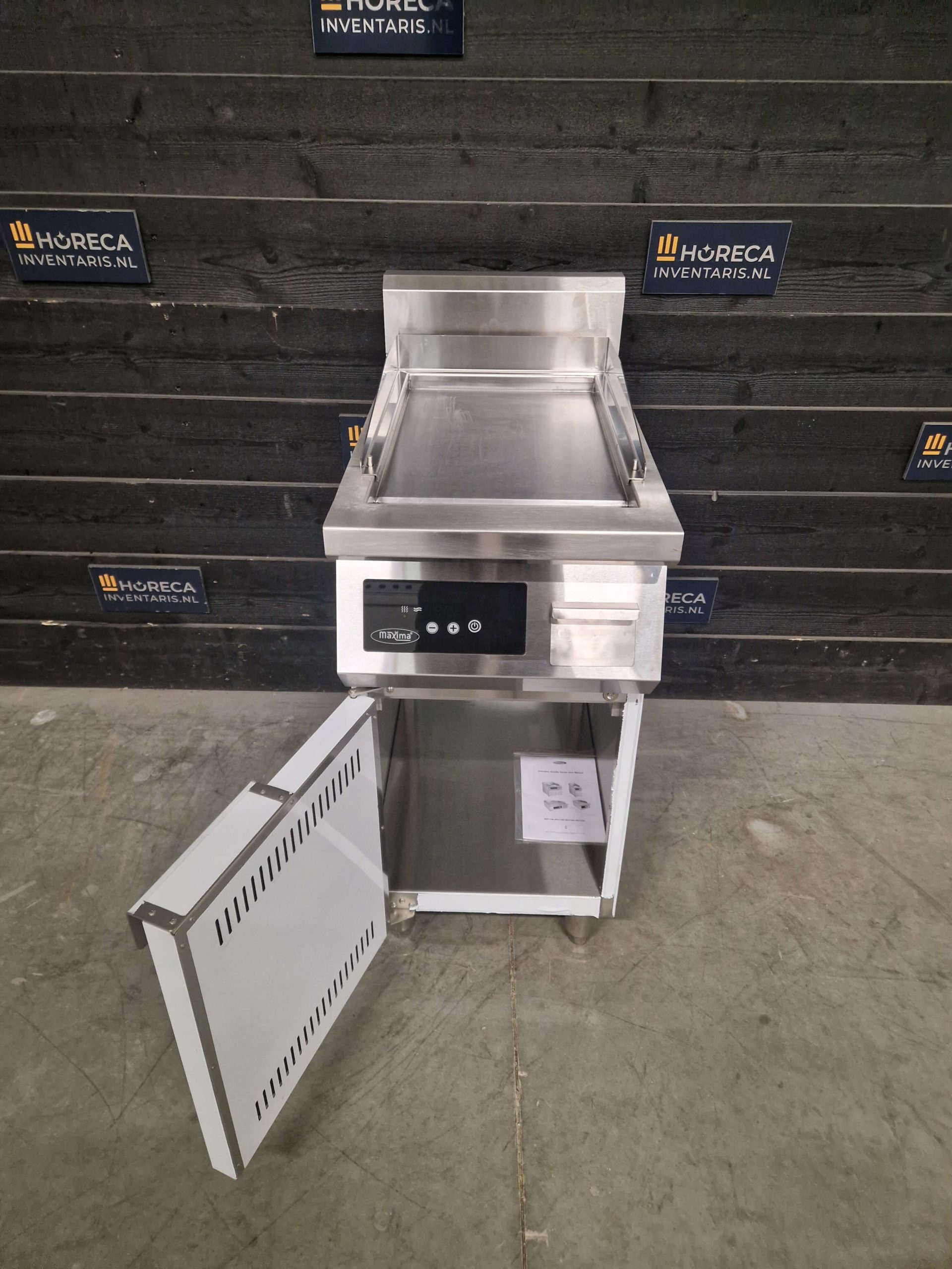 Deze professionele inductie grillplaat met glad oppervlak van blank staal is ideaal voor snel en nauwkeurig grillen. Dankzij de uitstekende warmtegeleiding bereid je moeiteloos producten zoals eieren, vis, pannenkoeken en groenten. Het robuuste RVS onderstel zorgt voor stabiliteit en biedt handige opbergruimte.