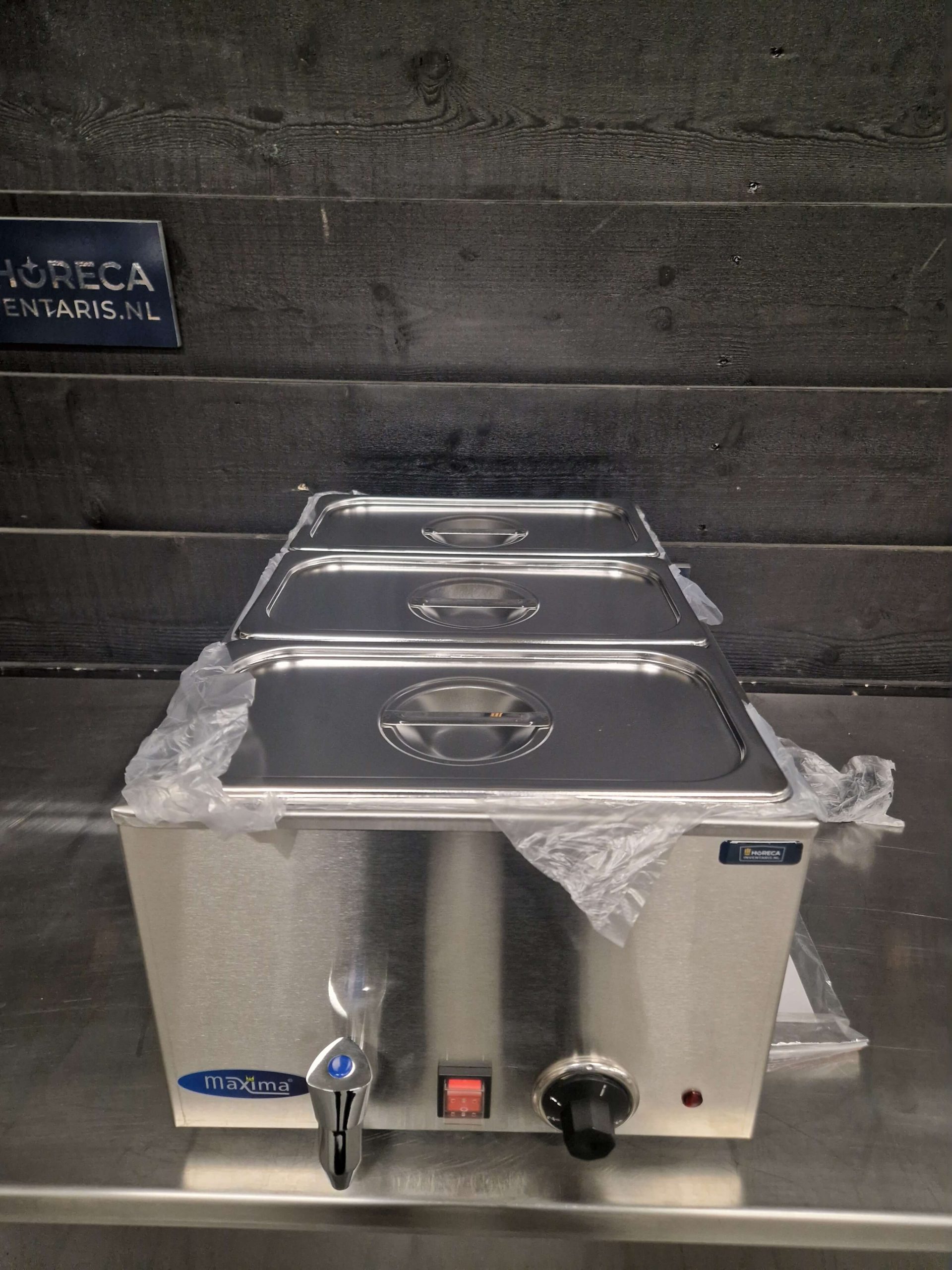 Deze au bain-marie is ideaal voor het opwarmen van sauzen of warmhouden van voedsel. Met de aftapkraan kun je het reservoir van de bain marie gemakkelijk leegmaken. De thermostaat is regelbaar en heeft een temperatuurbereik tussen de 31 en 95 graden Celsius. De indicatielampjes geven aan wanneer het water de juiste temperatuur heeft. De bain marie is te gebruiken met gastronormbakken met een hoogte van maximaal 150 mm. Deze au bain-marie wordt geleverd als complete set met 3 x 1/3 GN-bakken en deksels (150 mm).