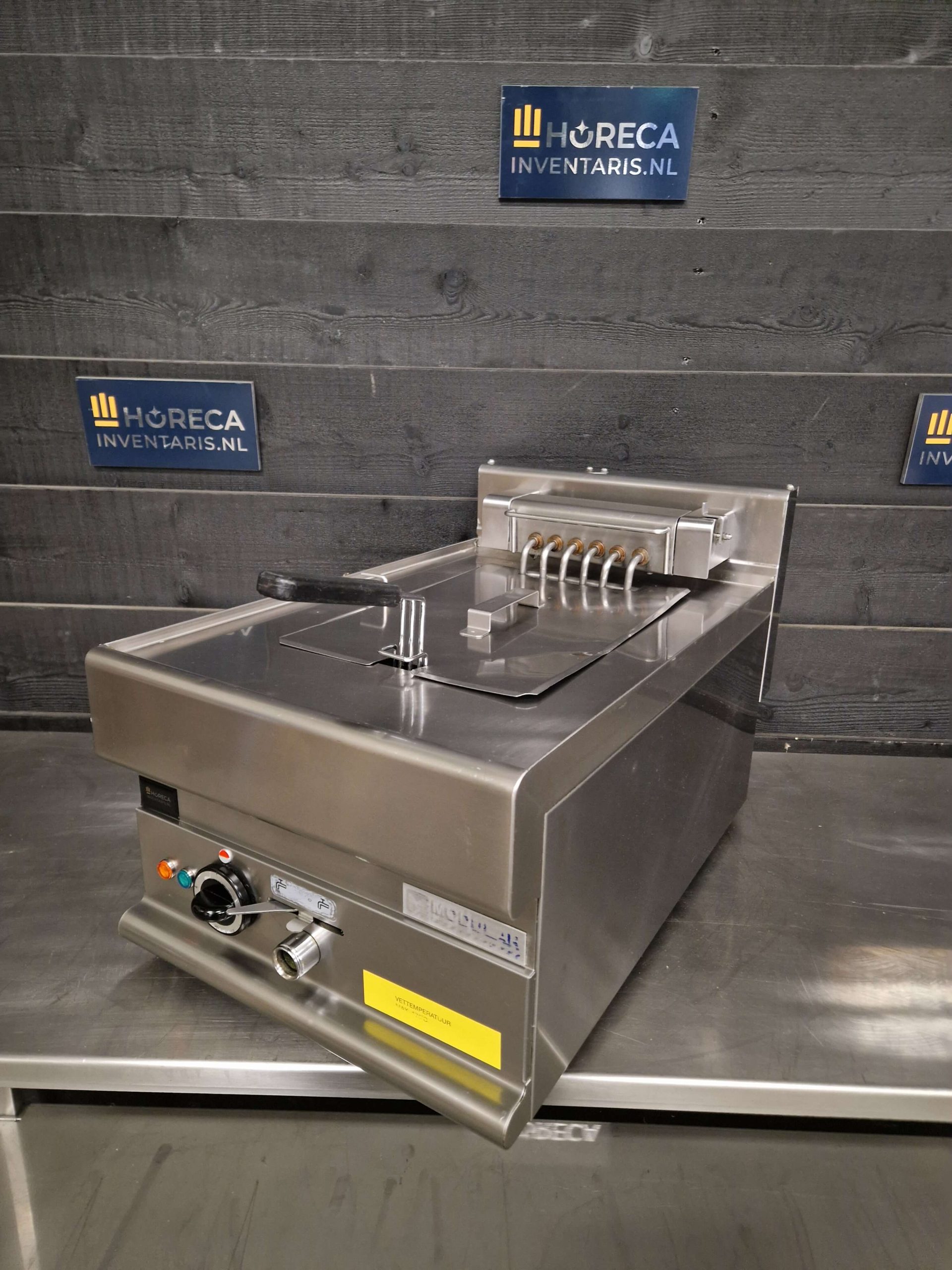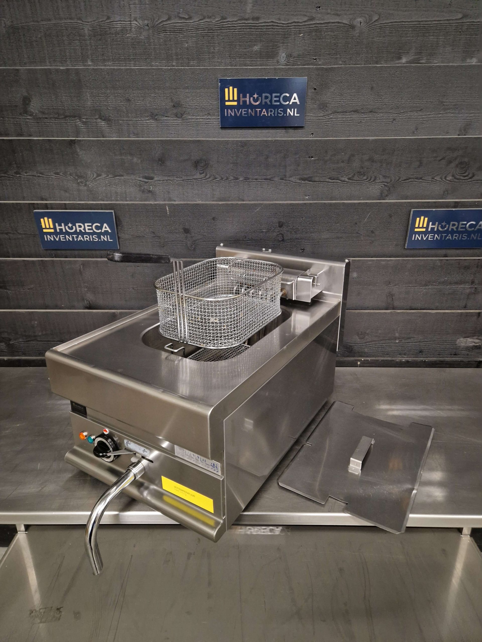 Het apparaat is uitgevoerd als tafelmodel en volledig vervaardigd uit duurzaam roestvrij staal (RVS 18/10). De binnenpan heeft afgeronde hoeken, wat het reinigen vereenvoudigt. Voor extra gebruiksgemak is het verwarmingselement opklapbaar, zodat je eenvoudig overal bij kunt. Daarnaast is de friteuse voorzien van een aftapkraan met afvoerpijp, waardoor je de olie veilig en snel kunt afvoeren na gebruik.