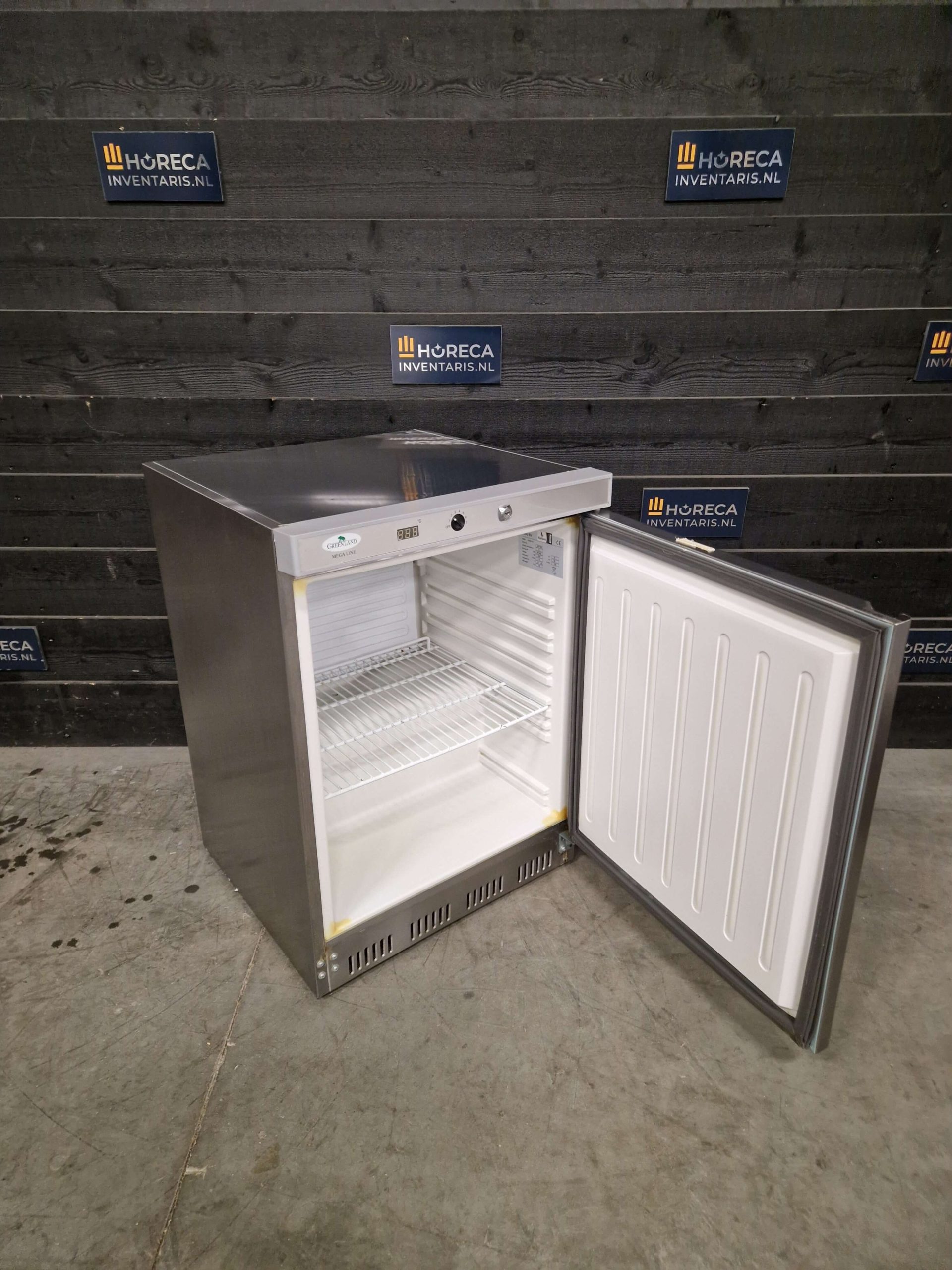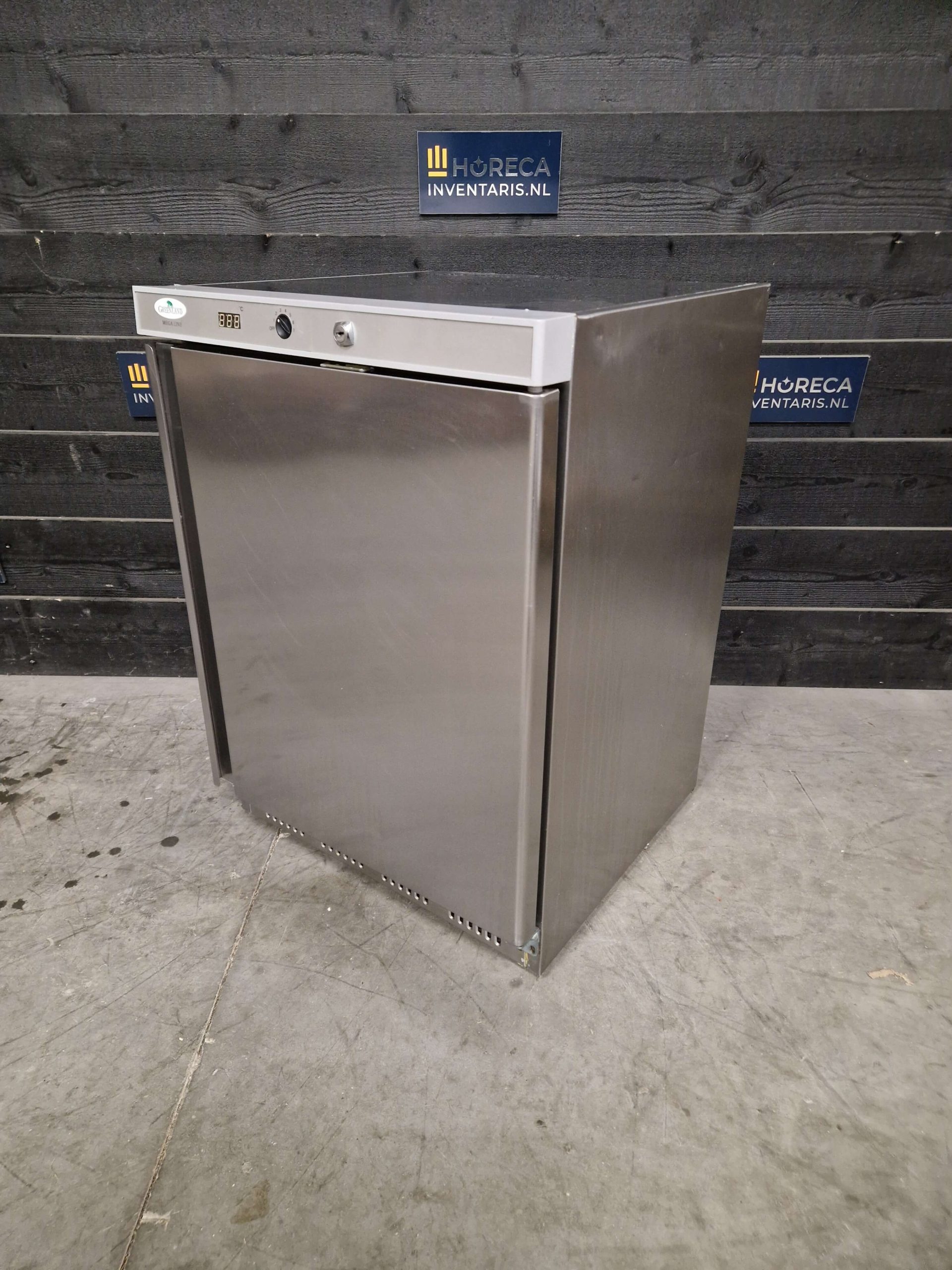 Compacte en degelijke Greenland HR200 S/S tafelmodel koelkast, ideaal voor horeca, kantoor of thuisgebruik. Dankzij het RVS ontwerp is de koelkast stevig, hygiënisch en eenvoudig schoon te houden.