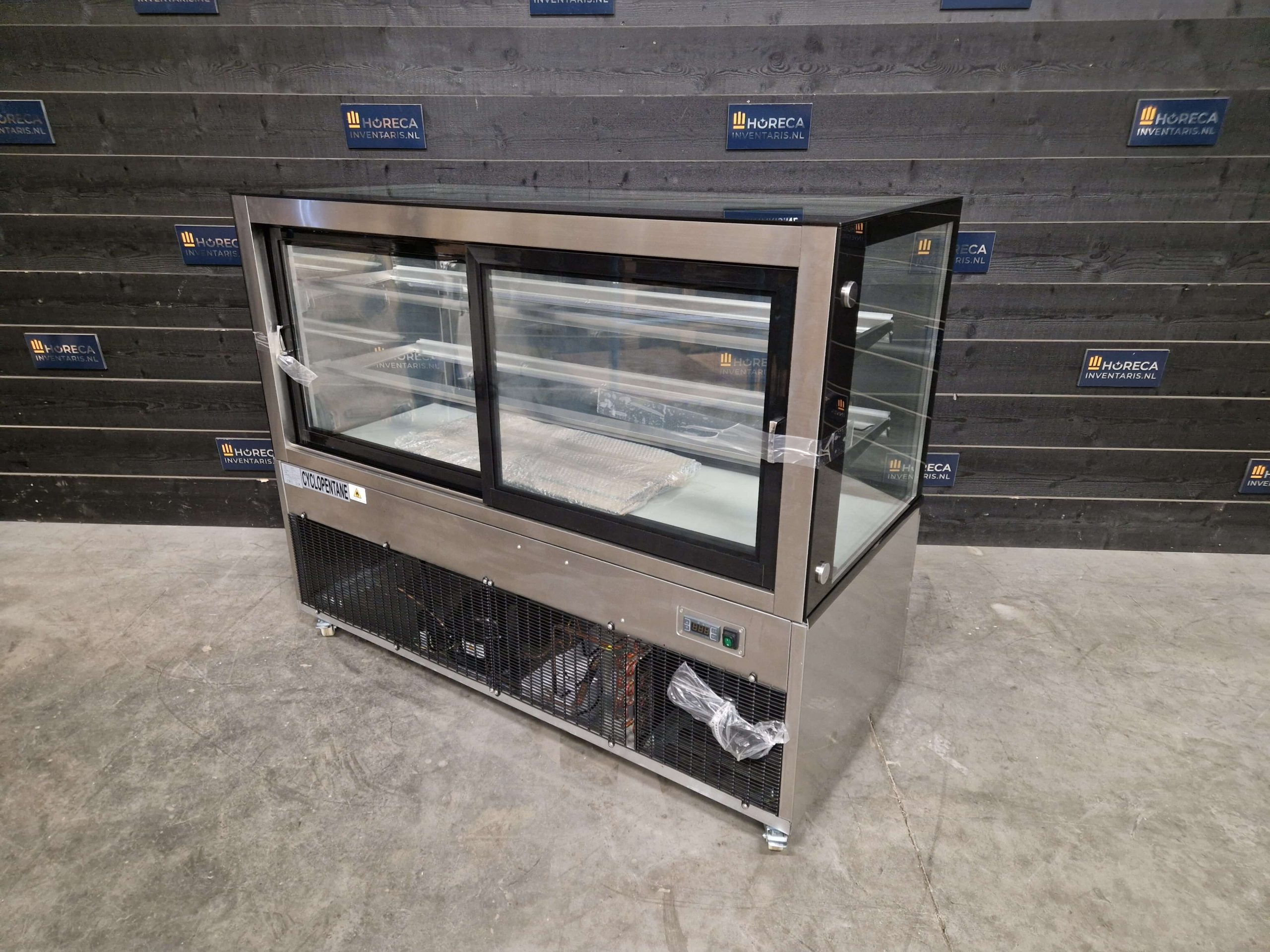 Via de schuifdeur aan de achterzijde kun je eenvoudig producten bijvullen of serveren. Het geventileerde koelsysteem zorgt ervoor dat de koude lucht gelijkmatig wordt verdeeld, waardoor overal in de vitrine dezelfde temperatuur wordt behouden.