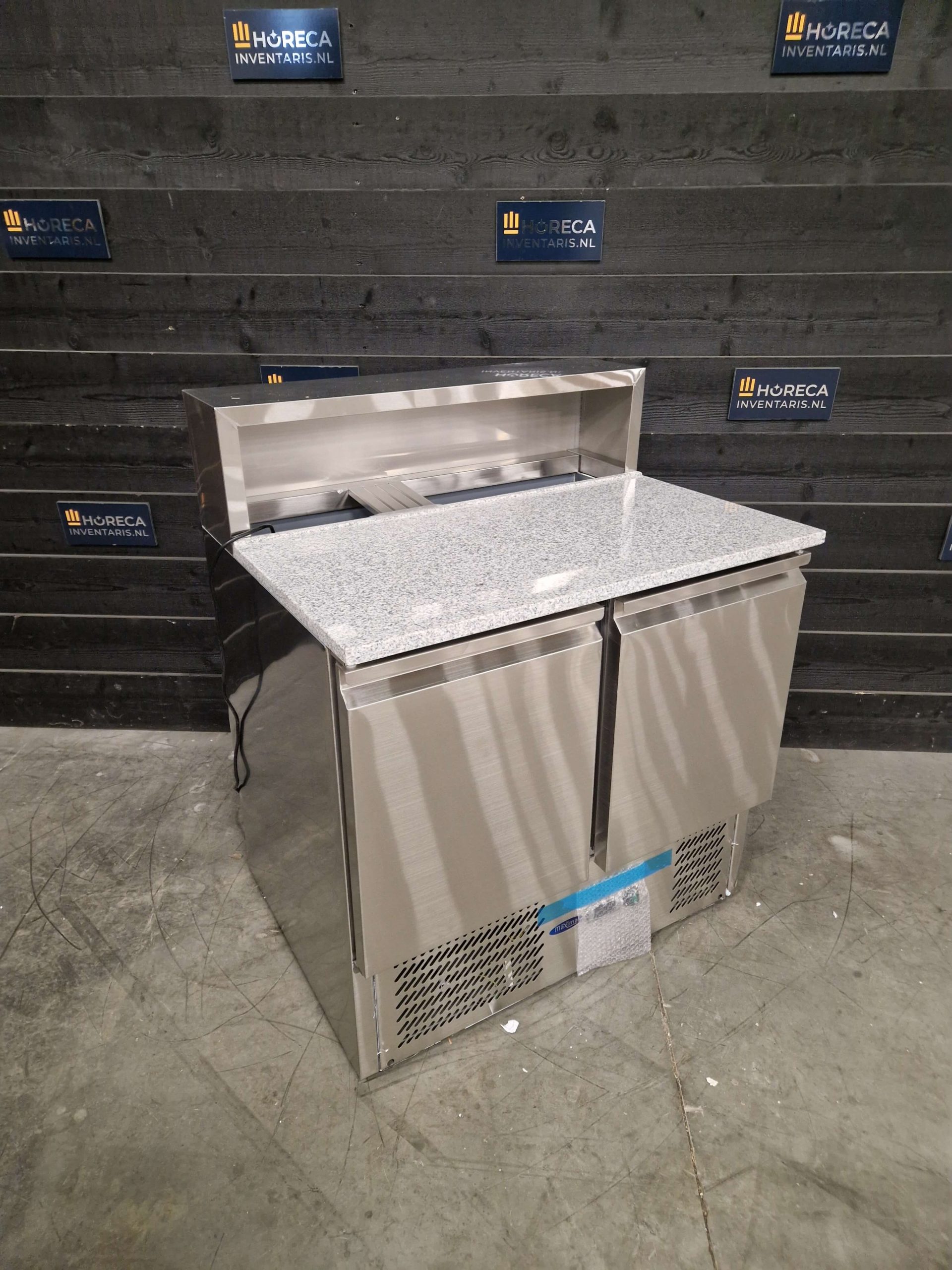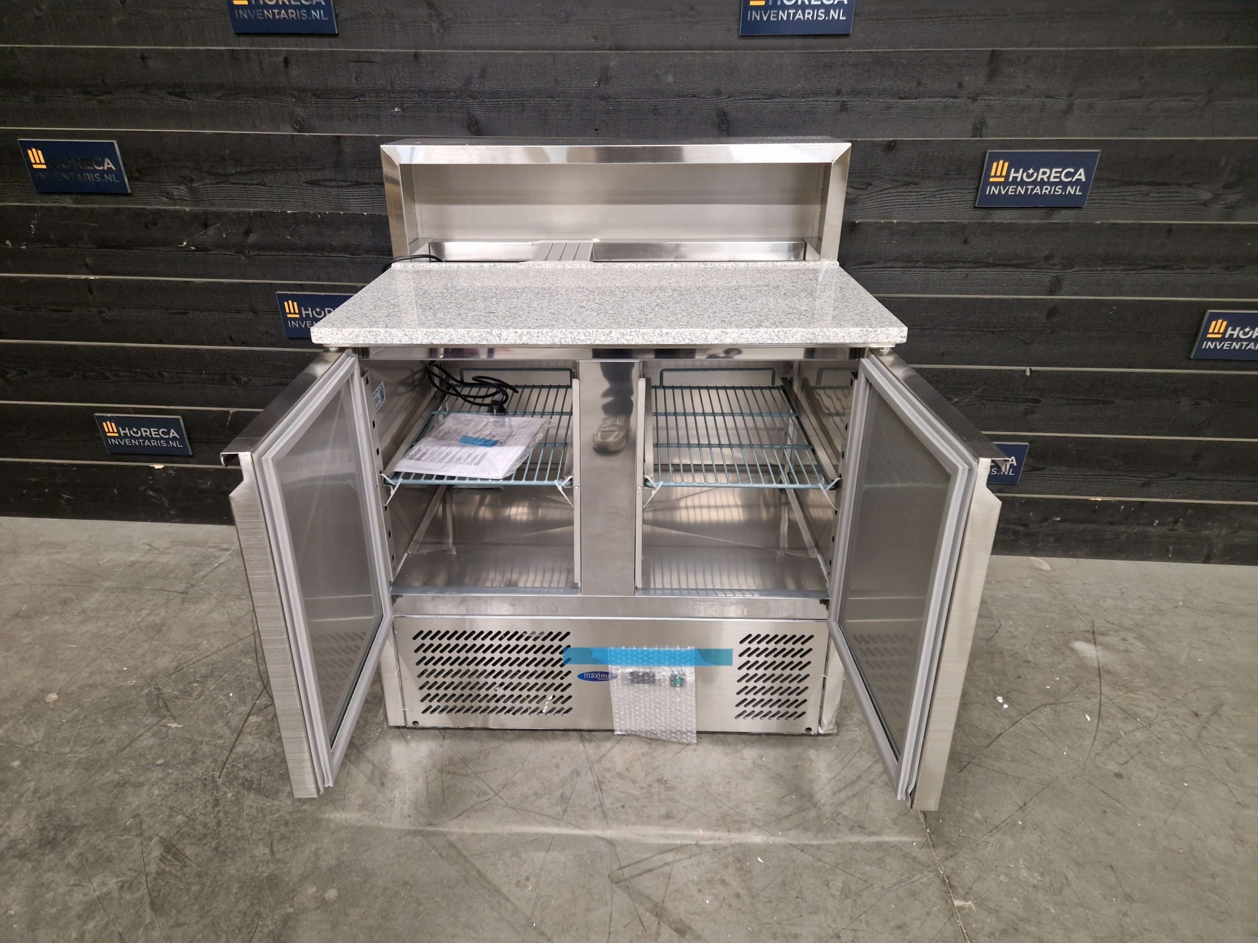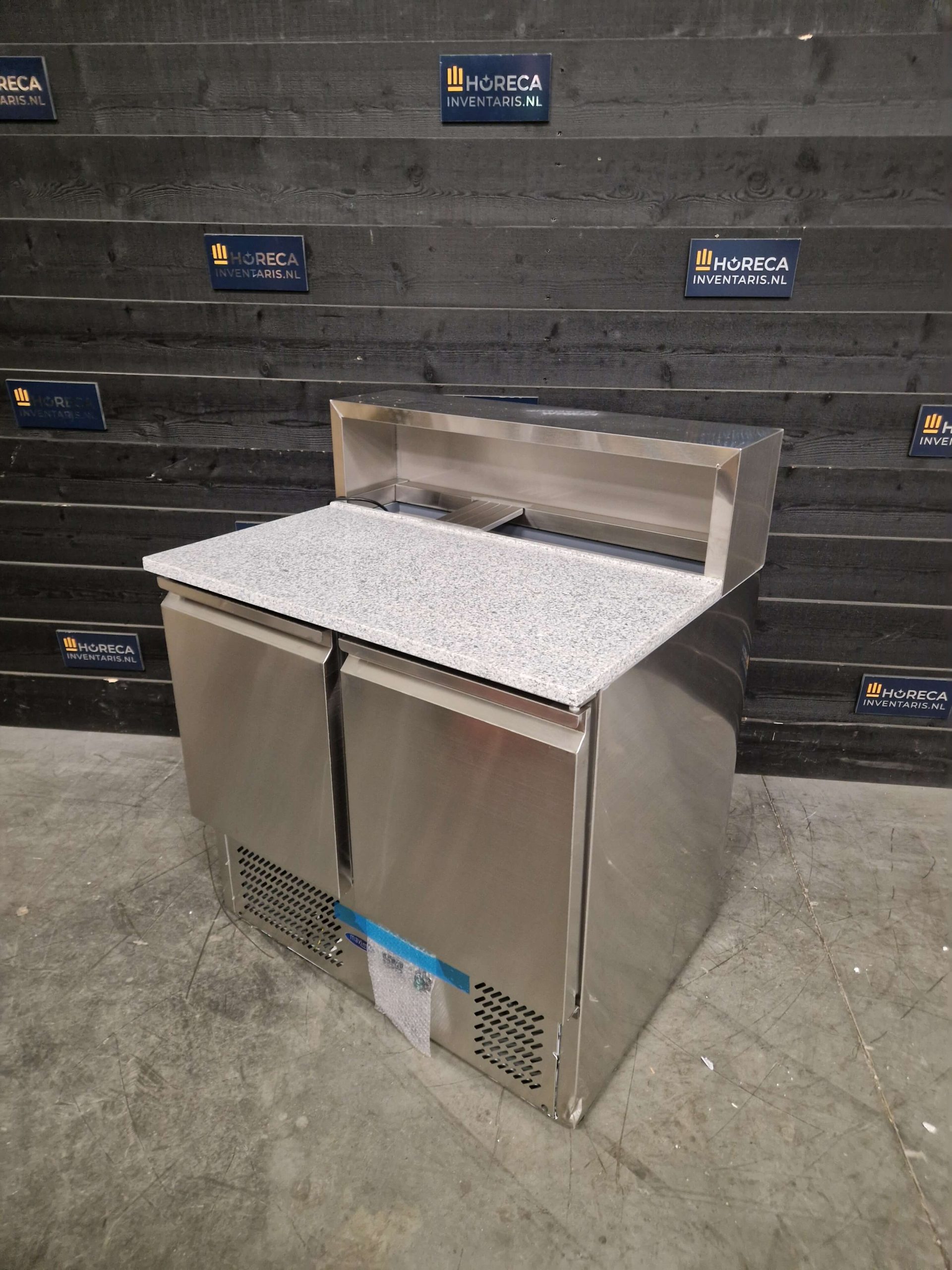 Bereid dagelijks verse pizza’s met gemak met deze professionele pizzawerkbank. Het granieten werkblad voorkomt dat pizzadeeg blijft plakken, terwijl de opzetkoelvitrine plaats biedt aan vijf 1/6 GN-bakken voor al je toppings binnen handbereik.