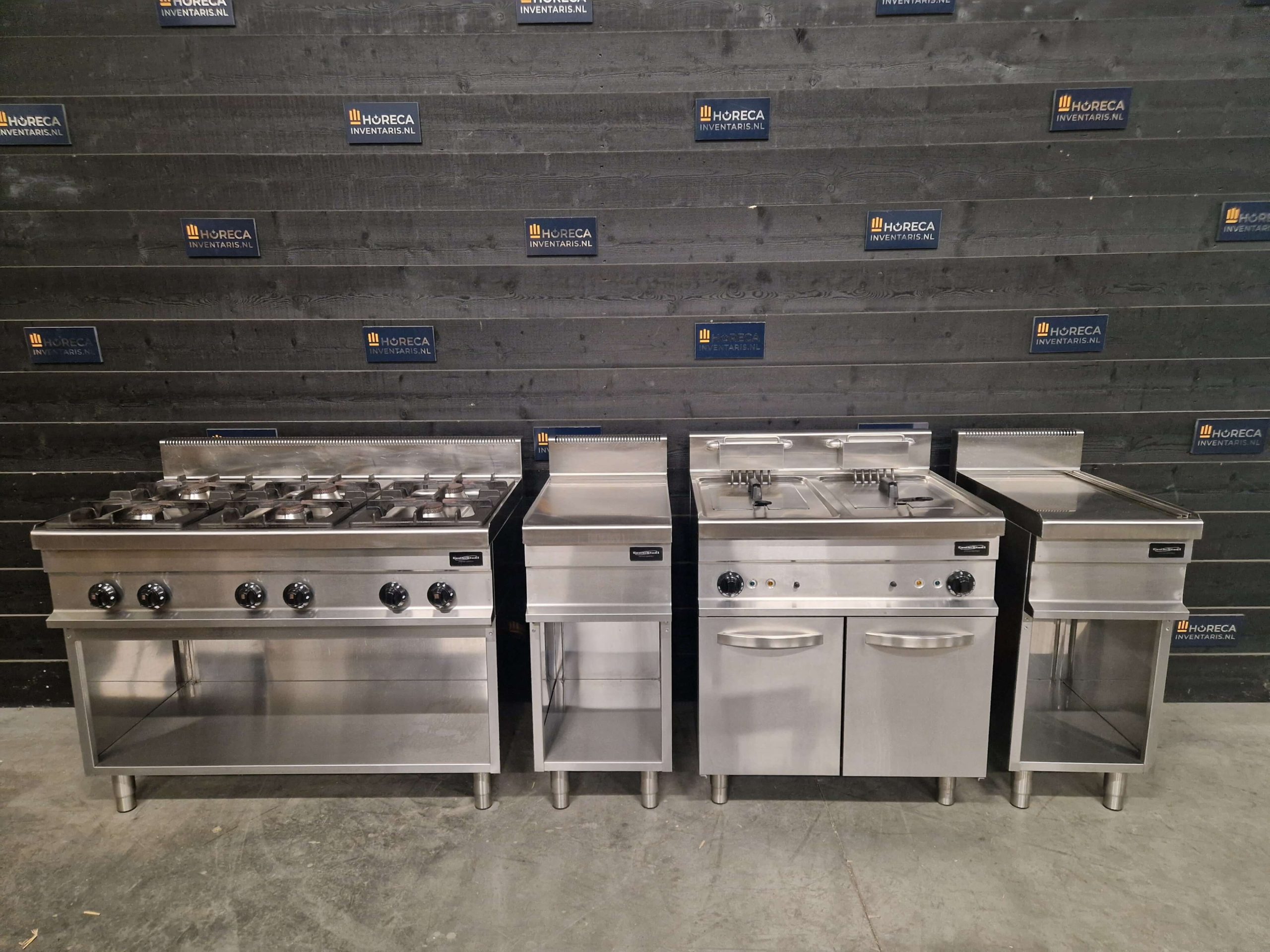 Het hart van de kooklijn wordt gevormd door het 6-pits gasfornuis van Combisteel. Met zes krachtige branders van elk 6 kW biedt dit fornuis ruim voldoende vermogen om meerdere gerechten gelijktijdig te bereiden. De robuuste uitvoering en praktische indeling maken het fornuis geschikt voor intensief dagelijks gebruik.