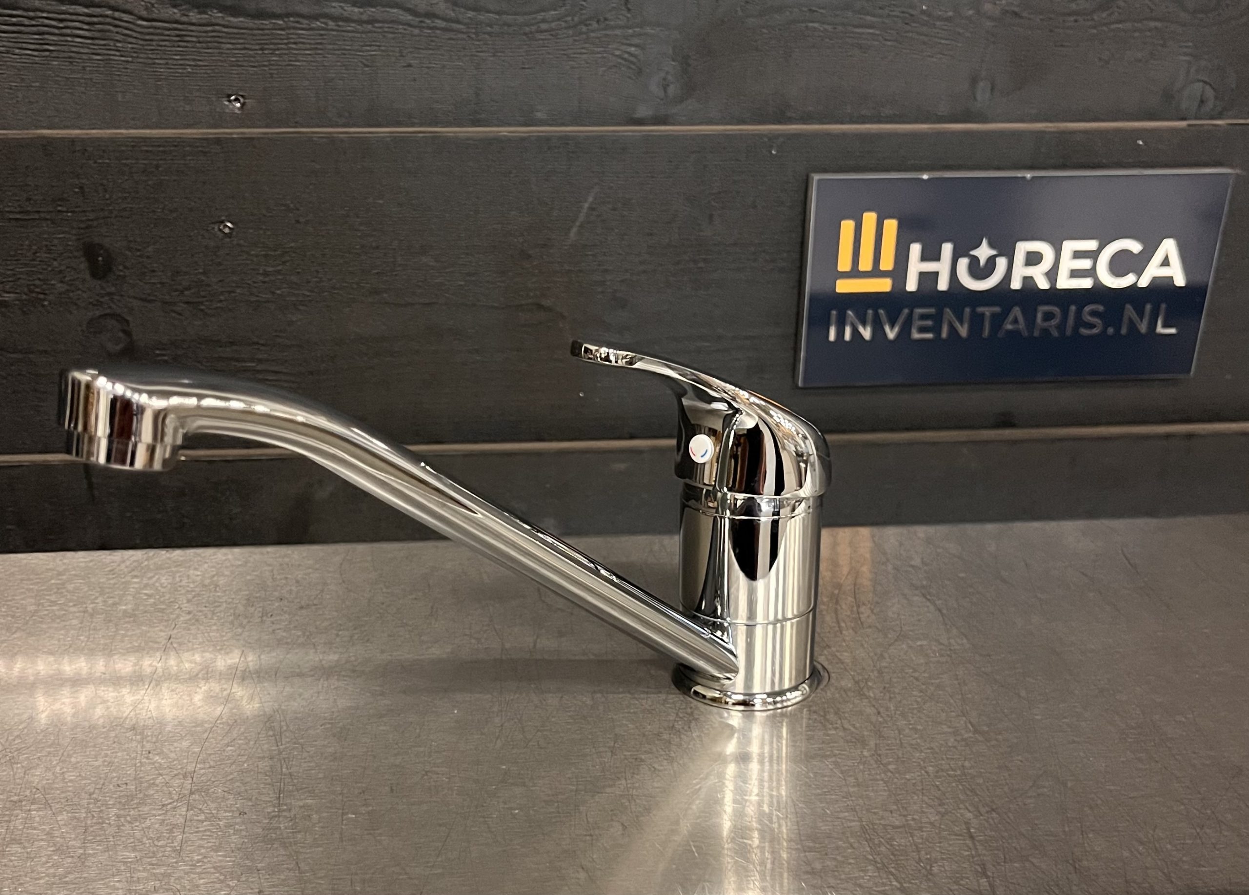 Horeca mengkraan met één-greeps bediening en draaibare uitloop. Ideaal voor montage op een RVS wastafel. Wordt geleverd met de benodigde bevestigingsmaterialen en 2 slangen voor aansluiting op de warme en koude waterleiding.