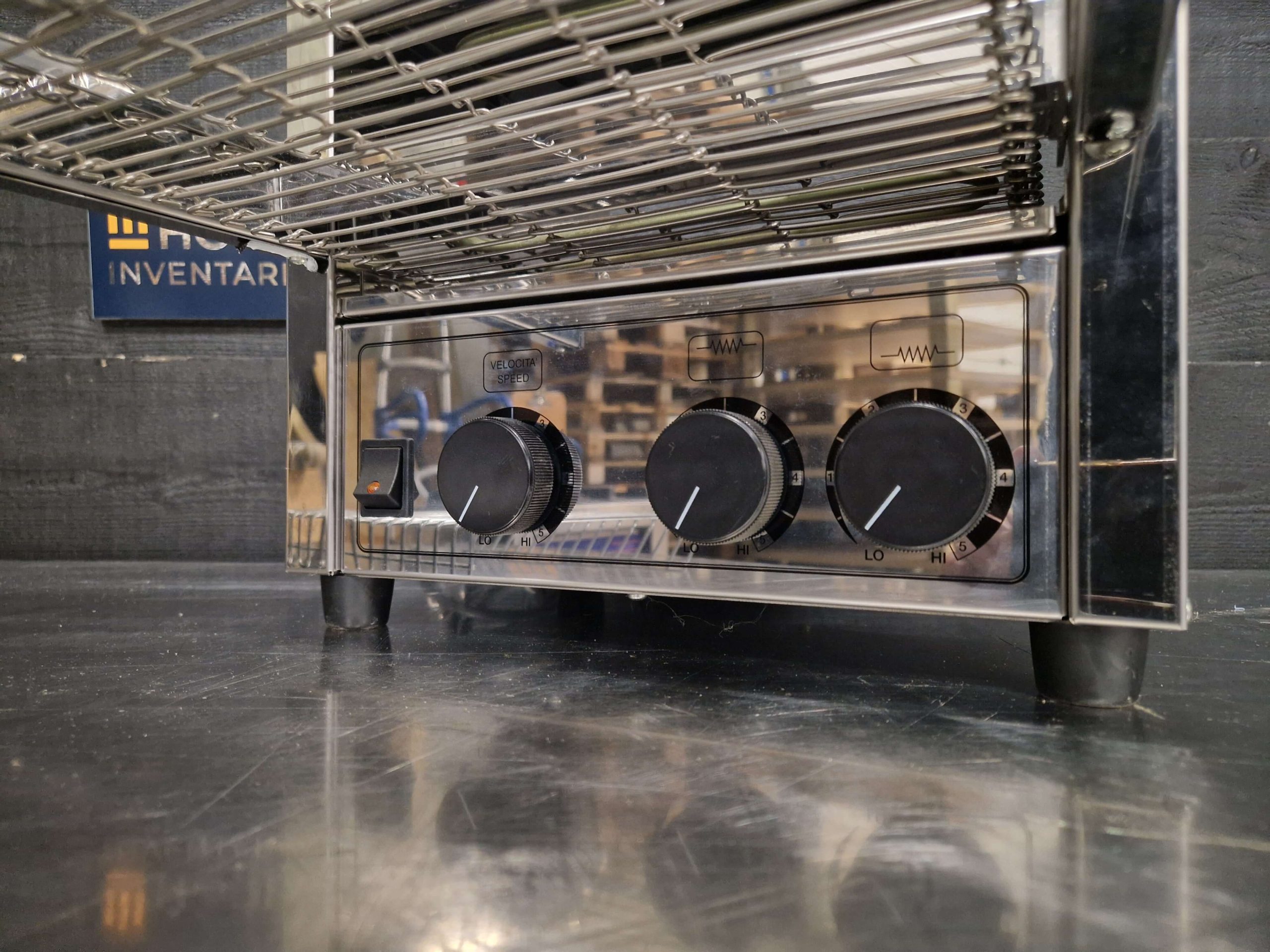 De Milantoast 18001 transportband is een betrouwbare en efficiënte oplossing voor het snel en uniform roosteren van brood in professionele keukens, bakkerijen en cateringbedrijven. Dankzij de regelbare snelheid en ruime capaciteit kunt u tot 600 sneetjes brood per uur verwerken met constante kwaliteit.