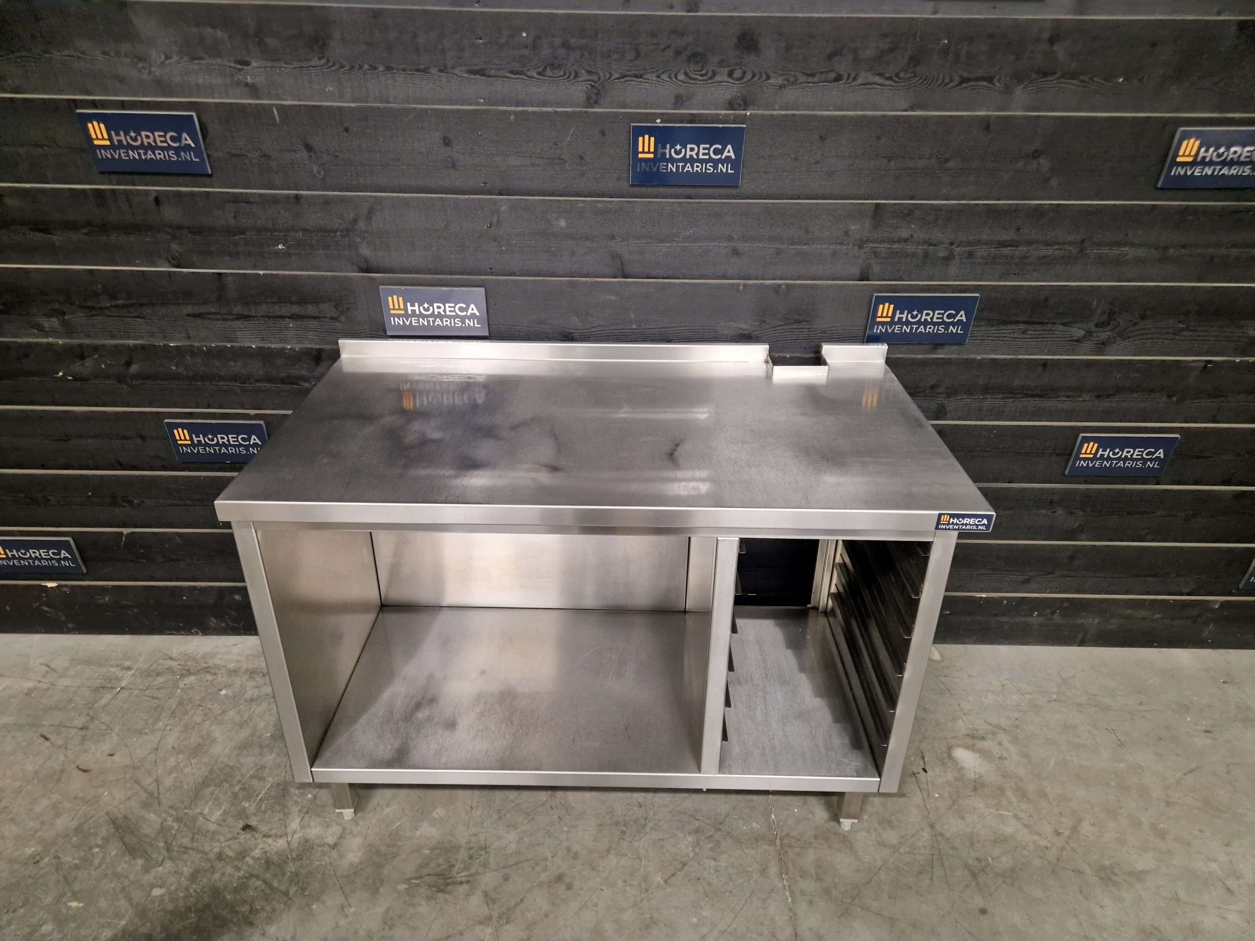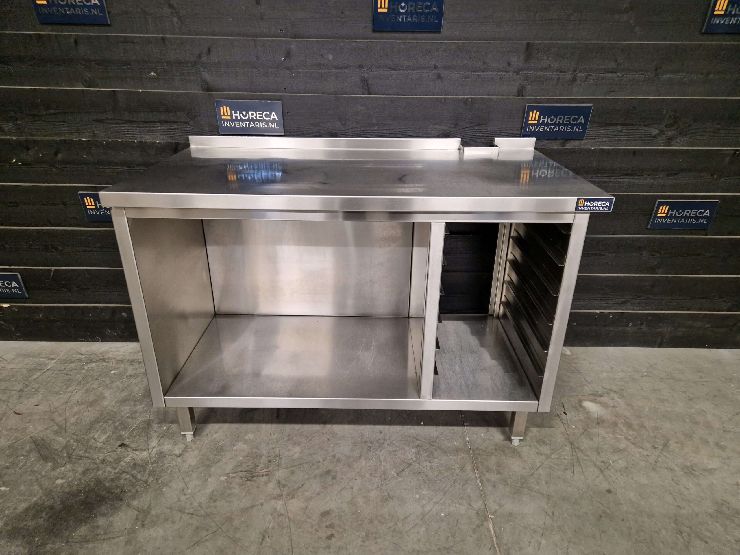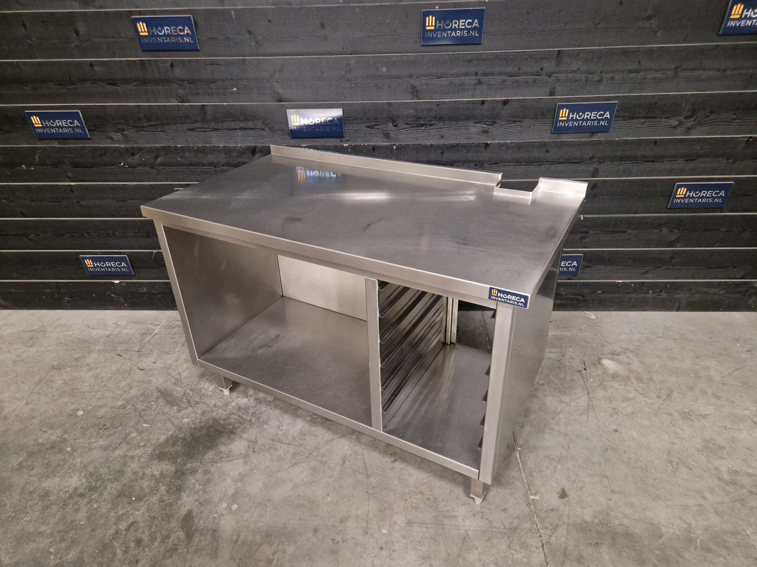 Het onderstel is uitgevoerd met ruimte voor 1/1 GN, waardoor het geschikt is voor gebruik in horeca- en grootkeukens waar gewerkt wordt met GN-bakken en standaard gastronormformaten. Ideaal voor extra opslagruimte onder apparatuur of als ondersteunende werkoplossing.