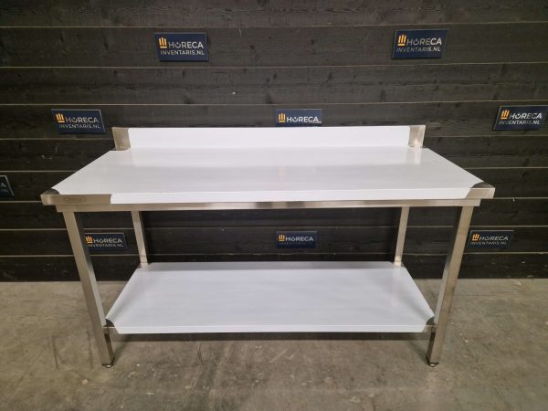 Deze RVS horeca werktafel is voorzien van een 10 cm opstaande rand aan de achterkant en een onderschap. Het werkblad kan met gemak 150 tot 200 kg dragen en de vierkante poten van 40×40 mm zijn in hoogte verstelbaar tussen de 85 en 90 cm.