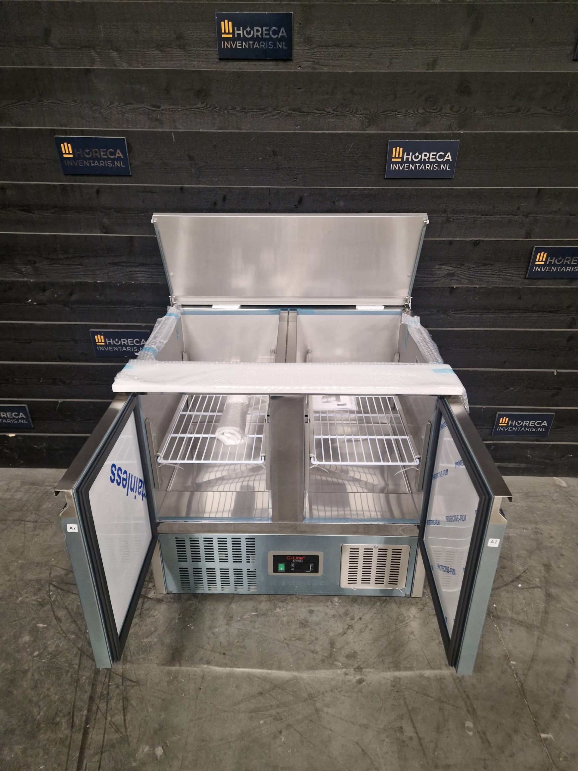 De Tefcold GS92 is de ideale koelwerkbank voor professioneel gebruik in keukens, catering of horeca. Met zijn ruime 225 liter inhoud biedt hij voldoende ruimte voor al uw ingrediënten en GN-bakken (niet inbegrepen). Dankzij het slimme ontwerp met open top en deksel kunt u eenvoudig toegang krijgen tot uw producten en deze efficiënt op temperatuur houden.