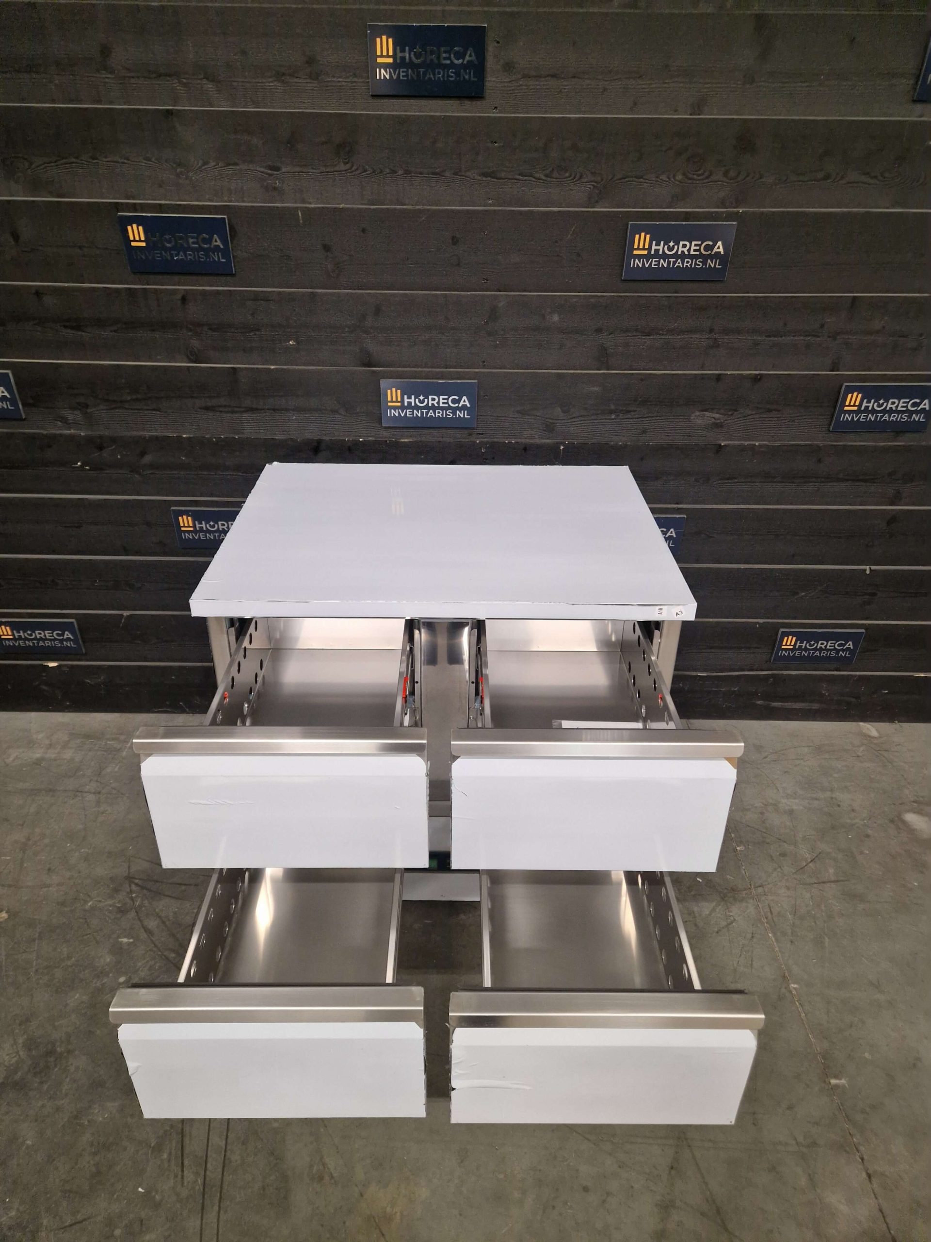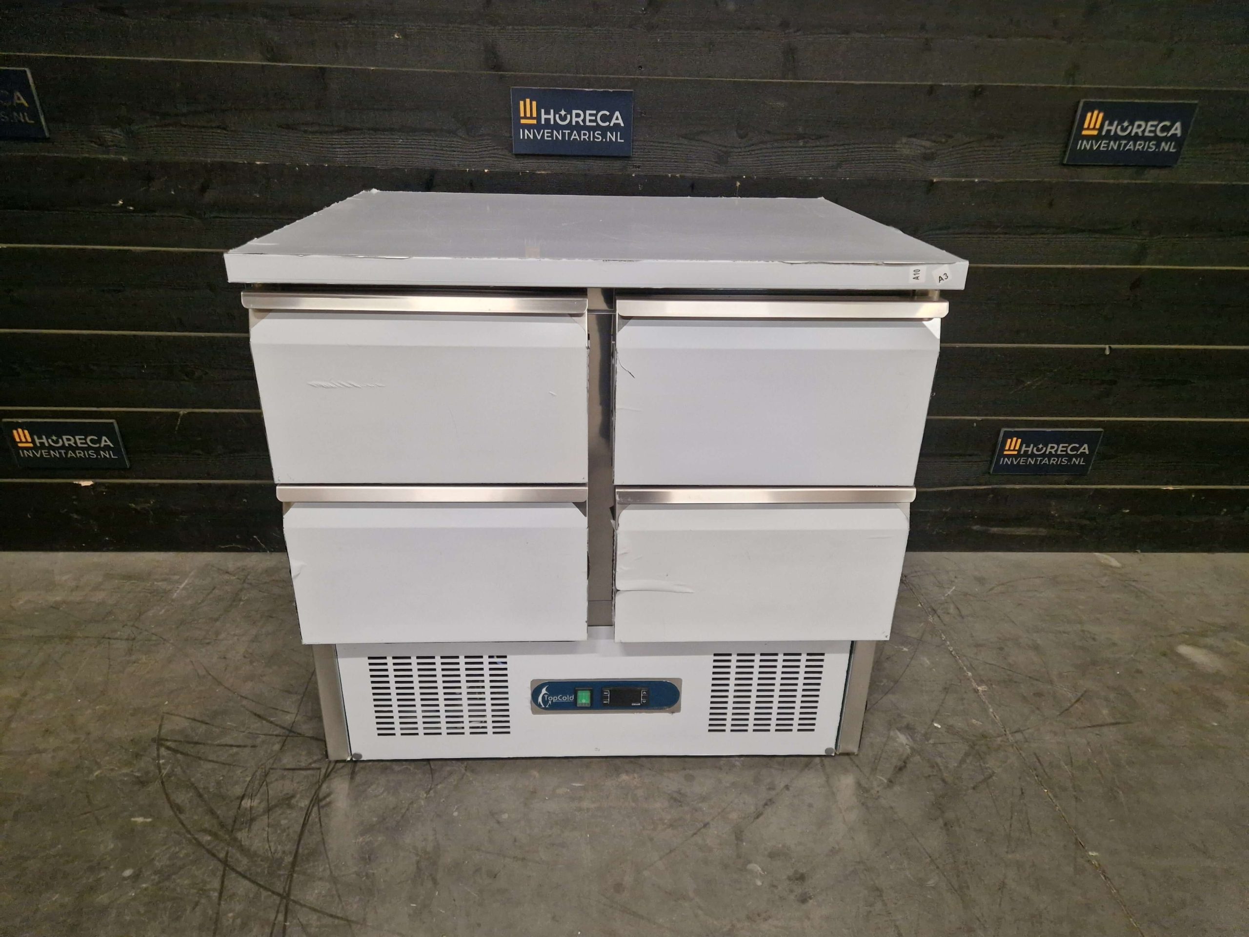 De Tefcold S901/4D is een compacte en efficiënte RVS koelwerkbank met 4 praktische lades, ideaal voor professionele keukens waar overzicht, hygiëne en optimale koeling centraal staan. Met een netto inhoud van 230 liter en een temperatuurbereik van +2 °C tot +10 °C blijven ingrediënten perfect vers en direct toegankelijk.