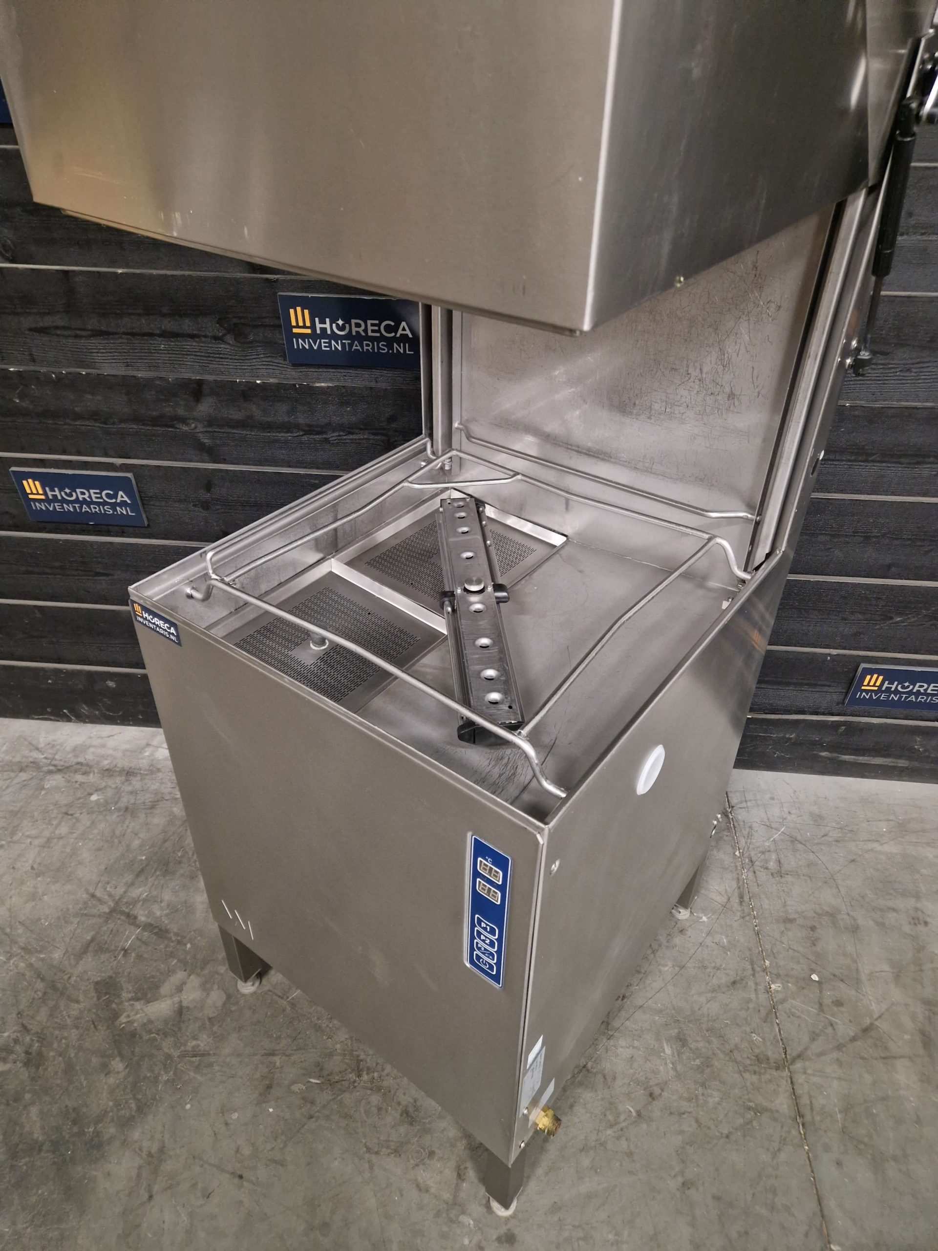 De Rhima WD-6 is geschikt voor was- en spoelkorven van 50 × 50 cm, een veelgebruikte standaardmaat in professionele keukens. De robuuste constructie en overzichtelijke bediening maken de machine gebruiksvriendelijk en onderhoudsarm.
