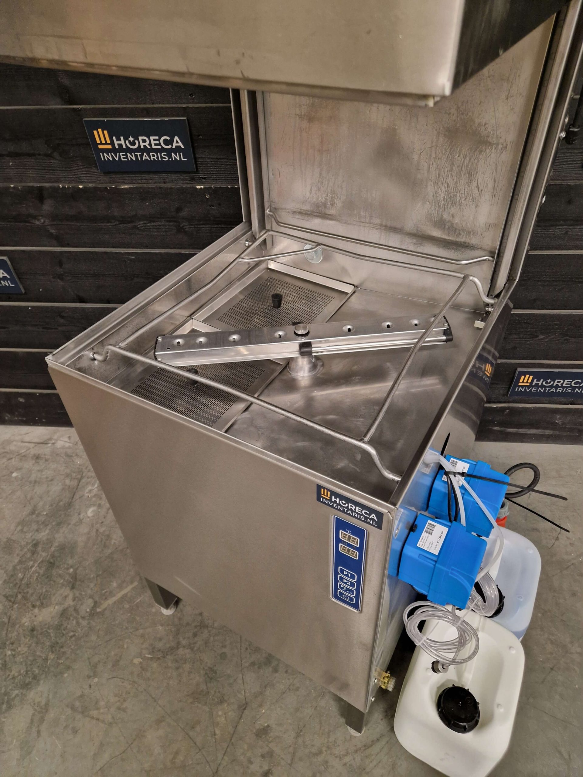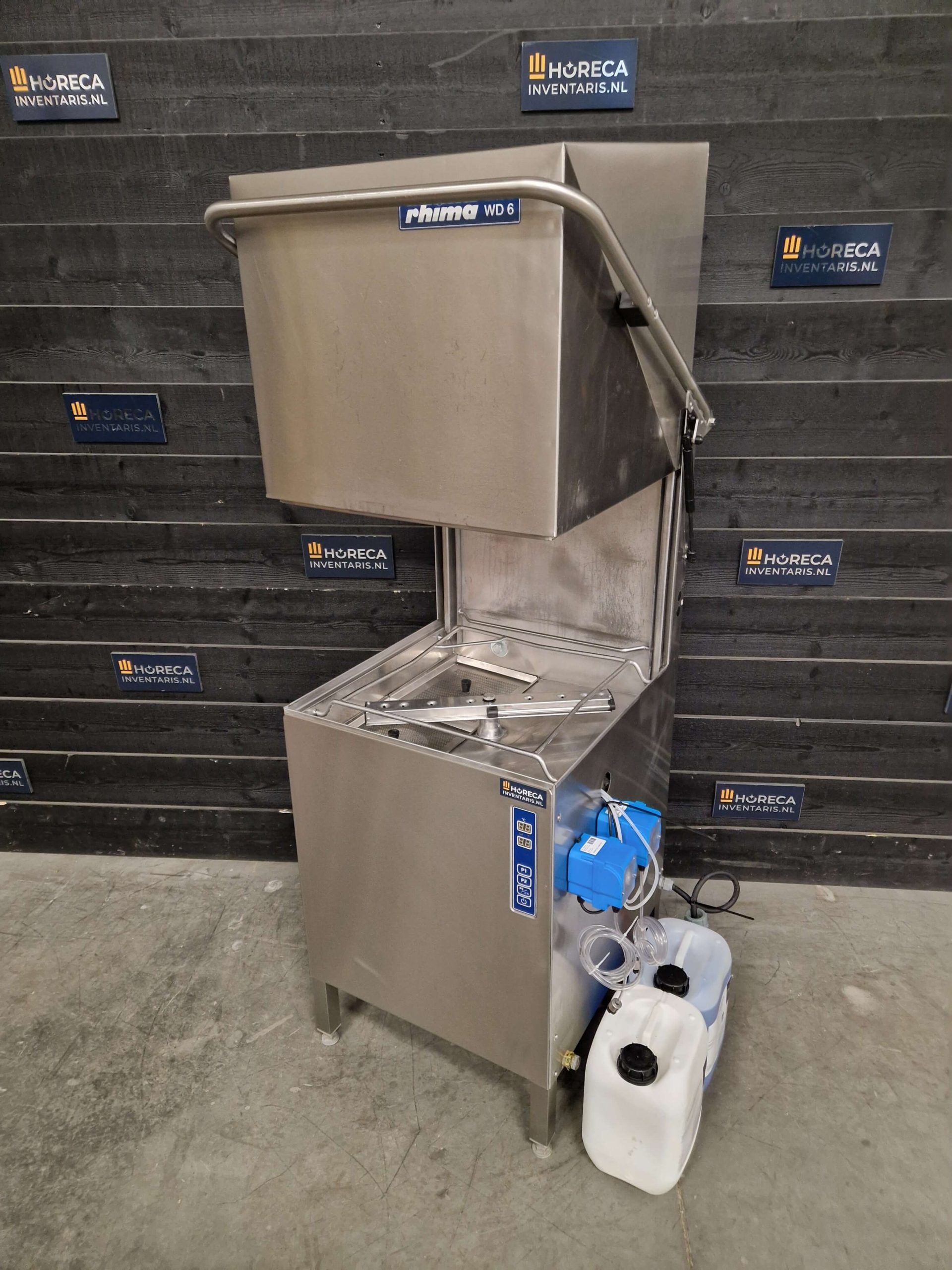Professionele doorschuifvaatwasser van Rhima, geschikt voor intensief gebruik in horecakeukens en grootkeukens. Deze krachtige machine werkt op 400V en is voorzien van een compleet nieuw zeep- en naglanssysteem voor optimale wasresultaten.