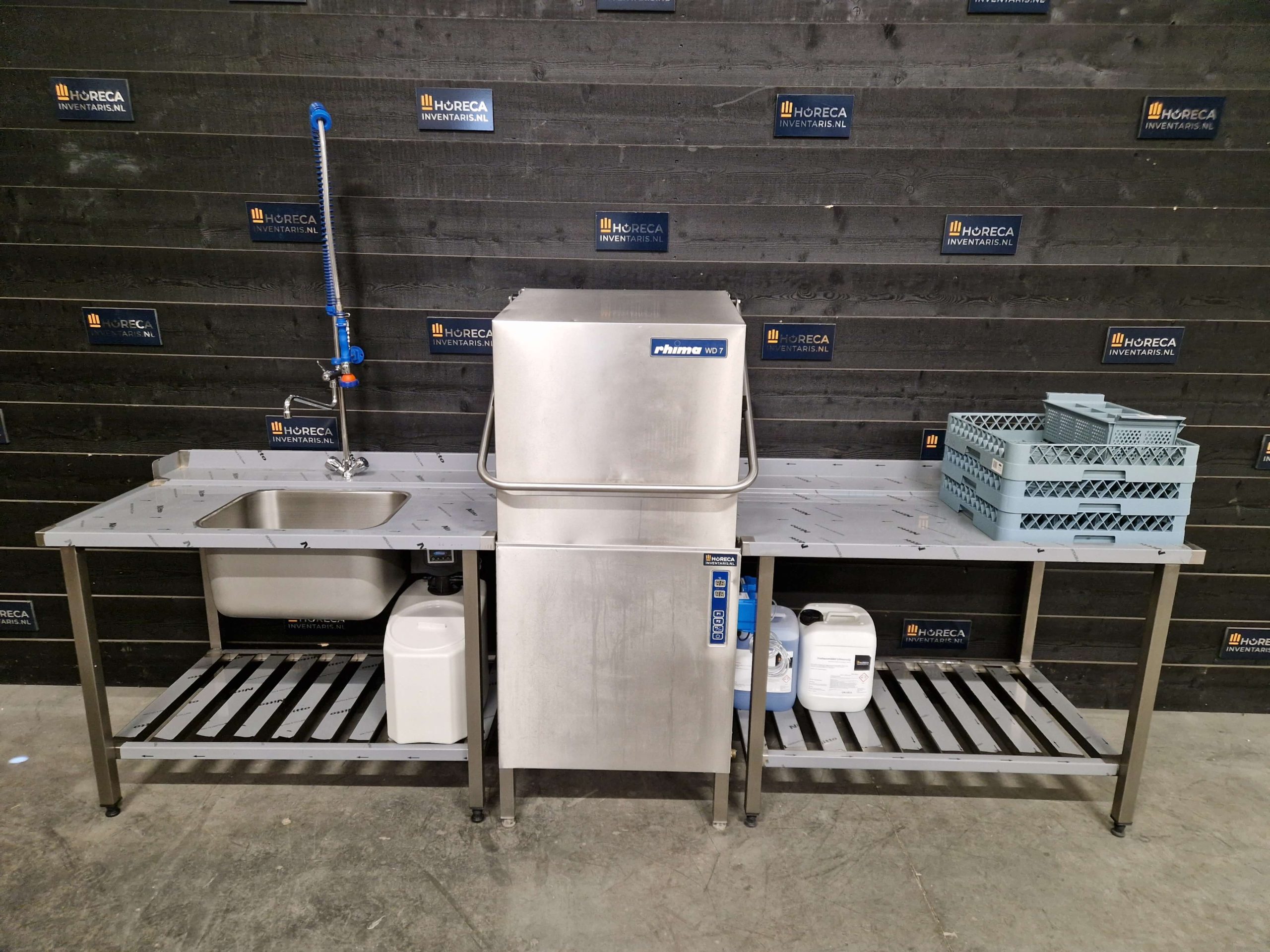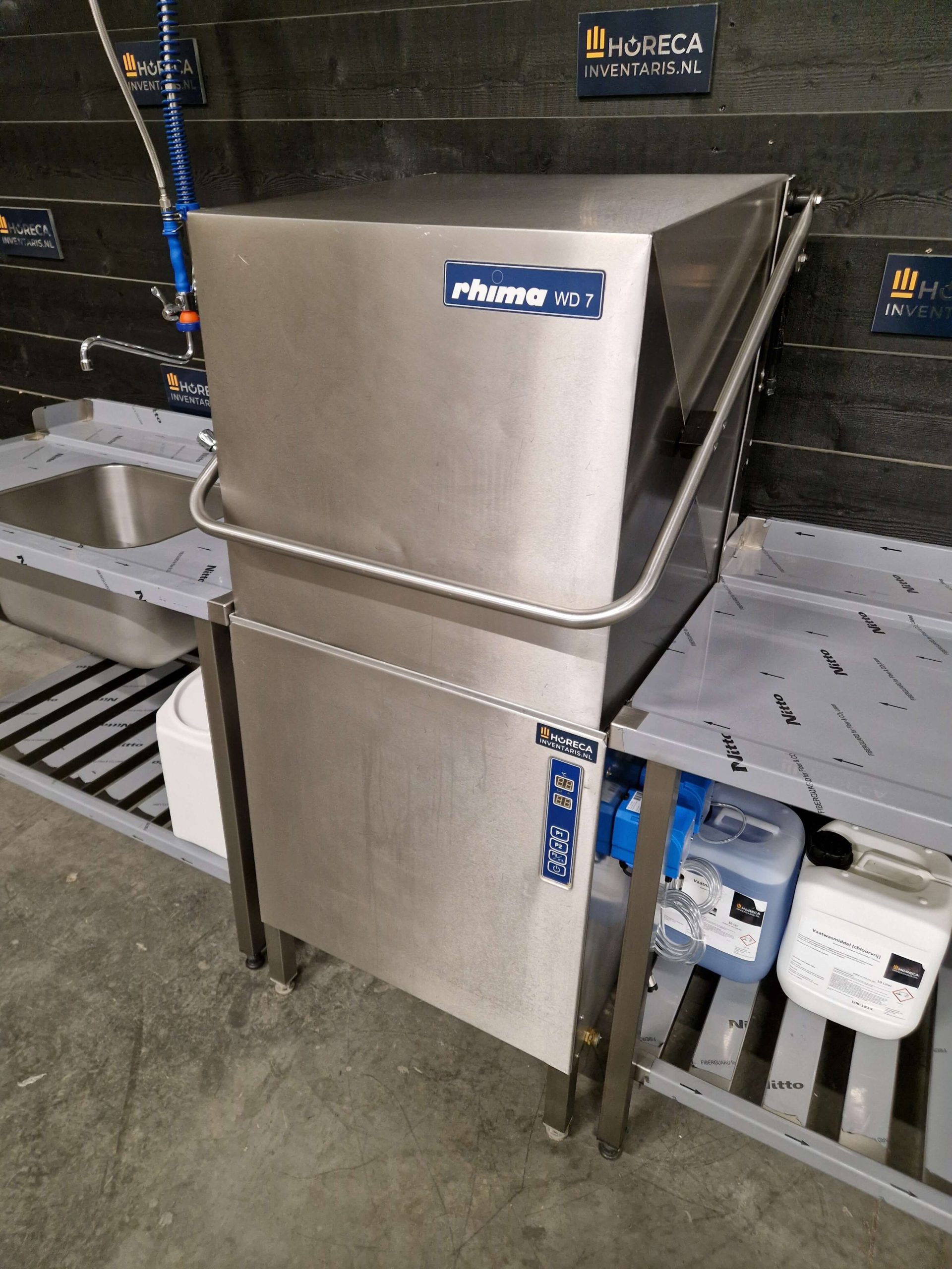 De doorschuifvaatwasser van Rhima type WD-7 is uitgevoerd in 400V met een vermogen van 10.800 Watt (10,8 kW). De machine is voorzien van een nieuw zeep- en naglanssysteem en wordt geleverd inclusief 10 liter kannen zeep en naglans. Dankzij de opvoerpomp is flexibele plaatsing mogelijk, ook bij hogere afvoeren.