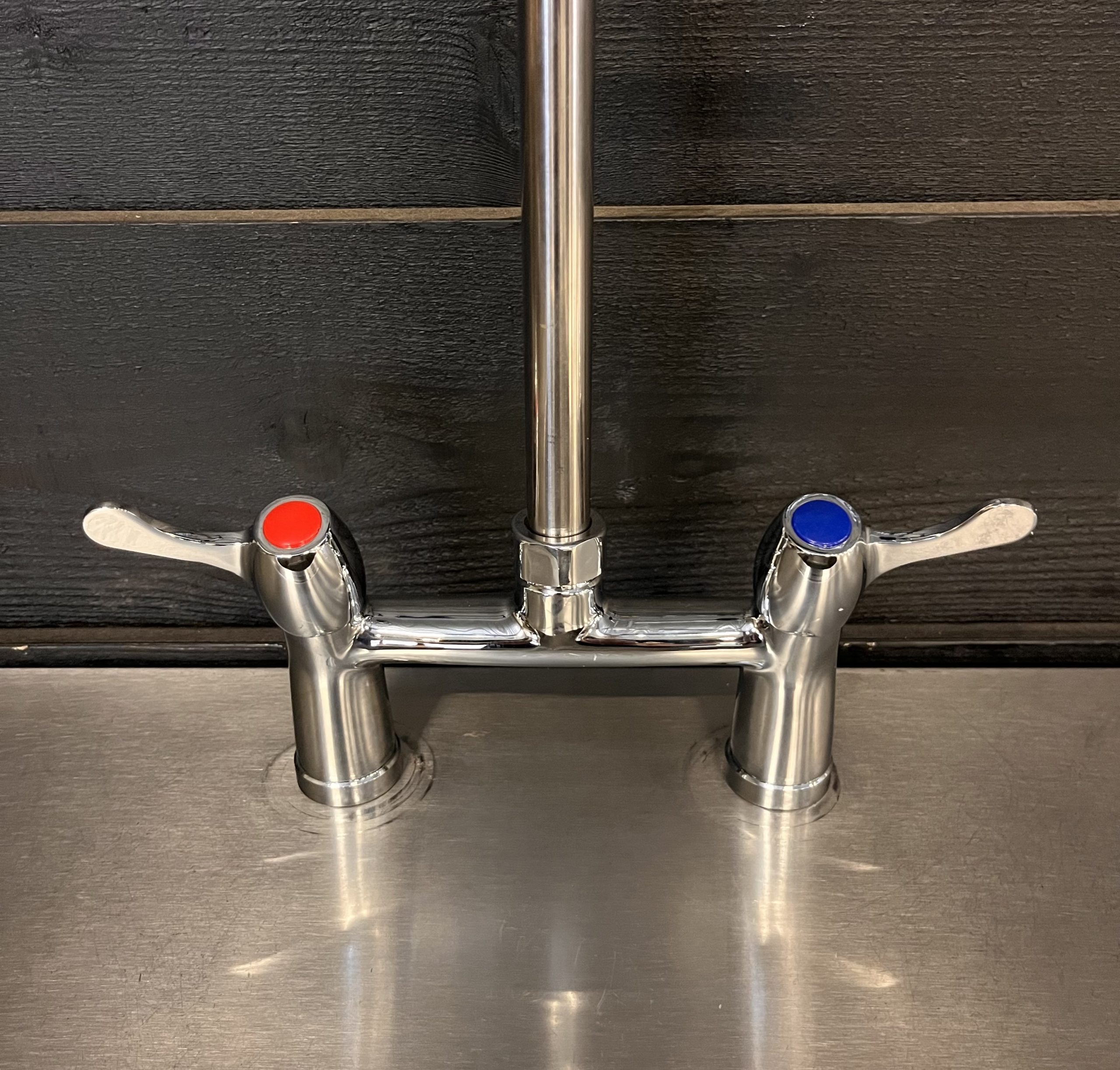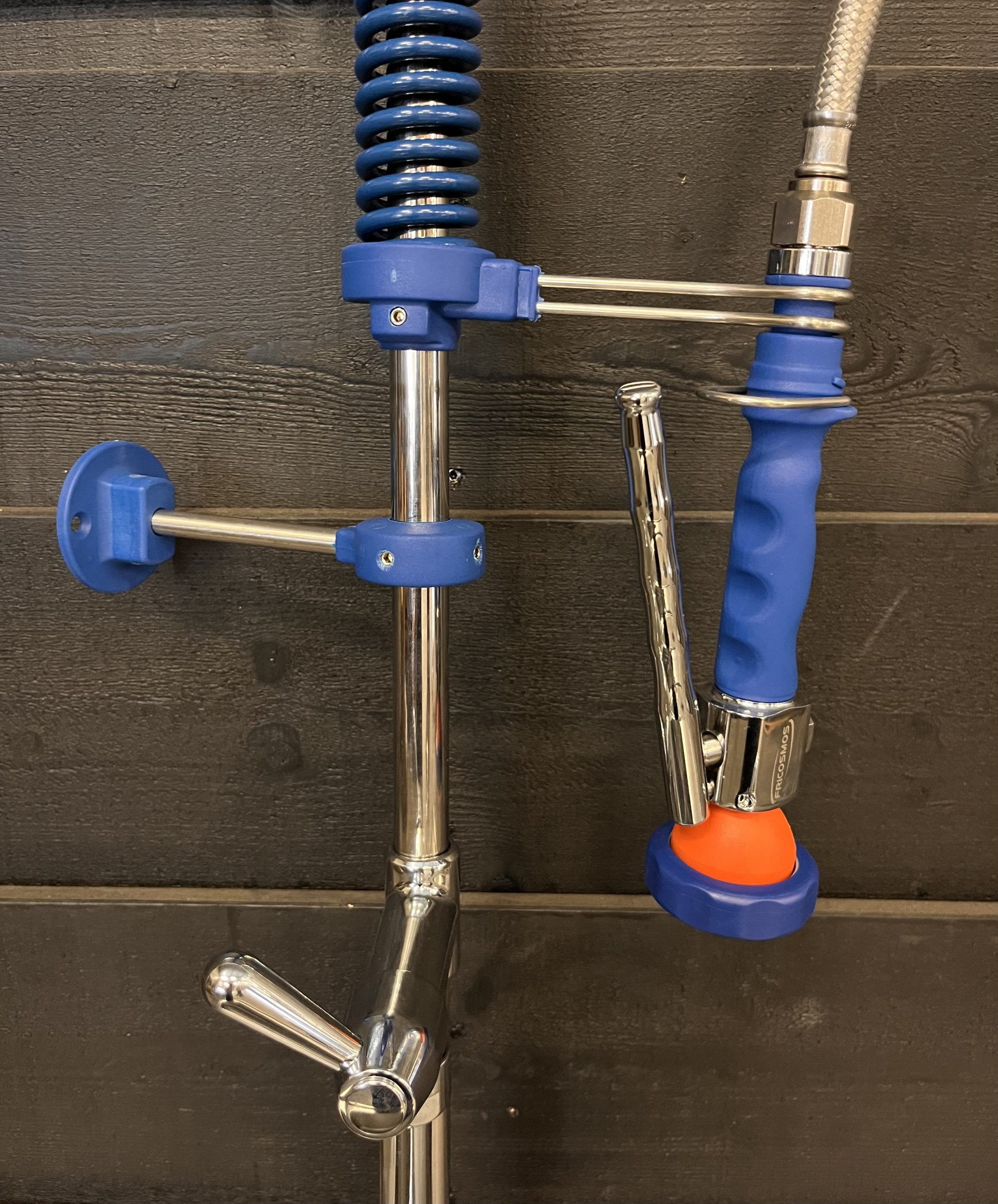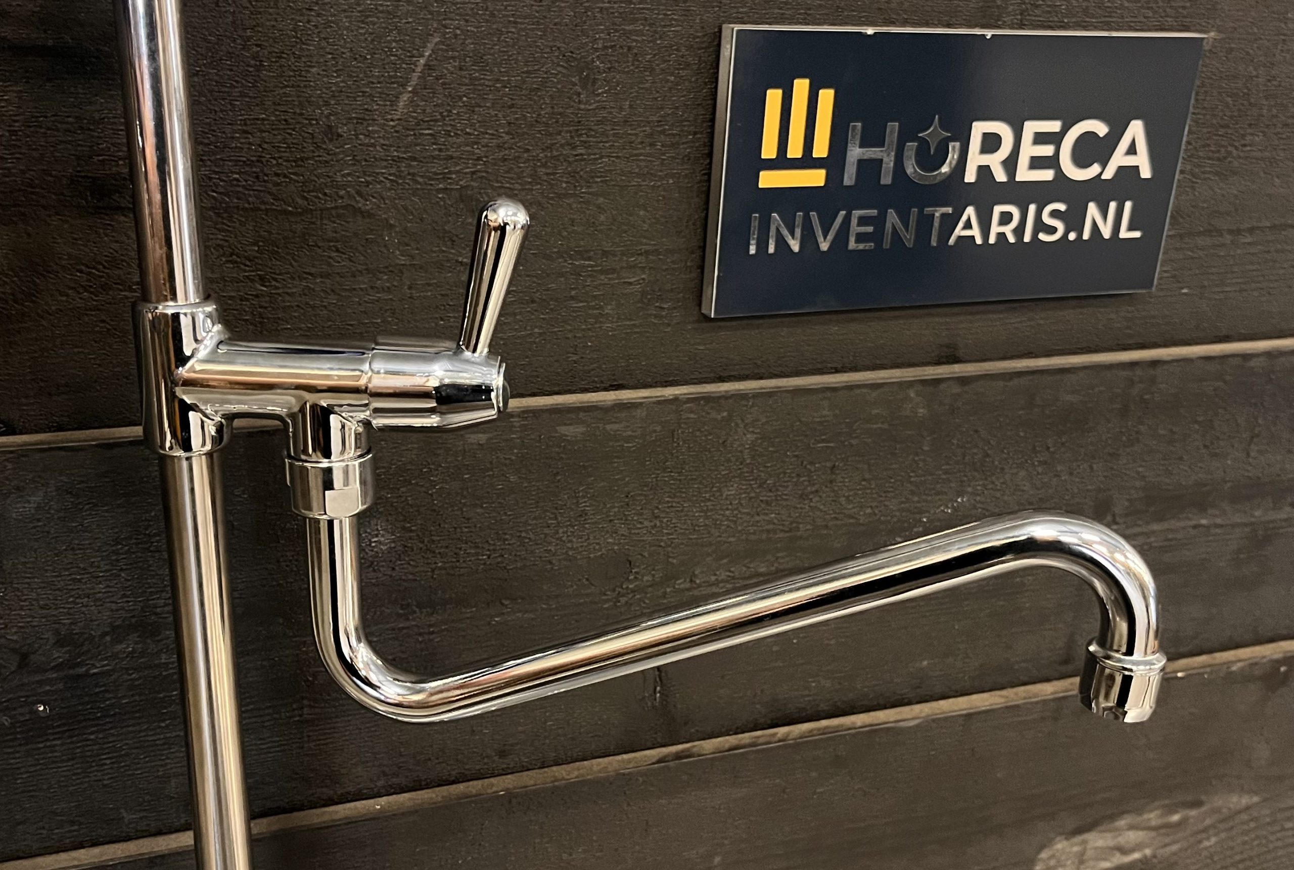 Horeca 2-gats mengkraan met voorspoeldouche en tussenkraan met draaibare uitloop. Ideaal voor montage op een RVS wastafel of op een aanvoertafel bij een vaatwasmachine. Wordt geleverd met de benodigde bevestigingsmaterialen en 2 slangen voor aansluiting op de warme en koude waterleiding.