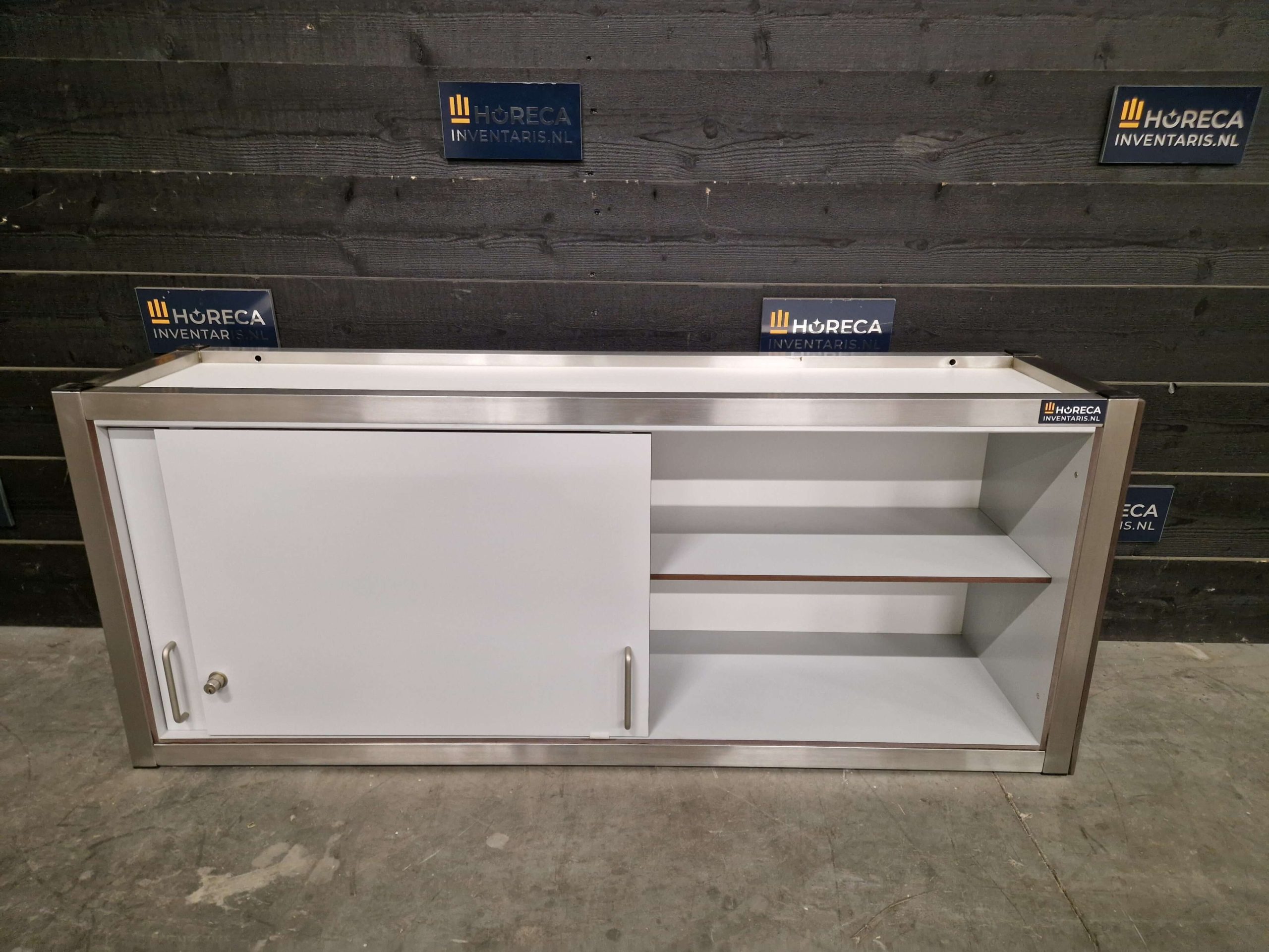 Met een afmeting van 150 x 36 x 61 cm biedt deze wandkast verrassend veel opbergruimte. De kast is voorzien van twee praktische schuifdeuren en een ligger aan de binnenkant, waardoor je de opslagruimte efficiënt kunt indelen over twee niveaus.