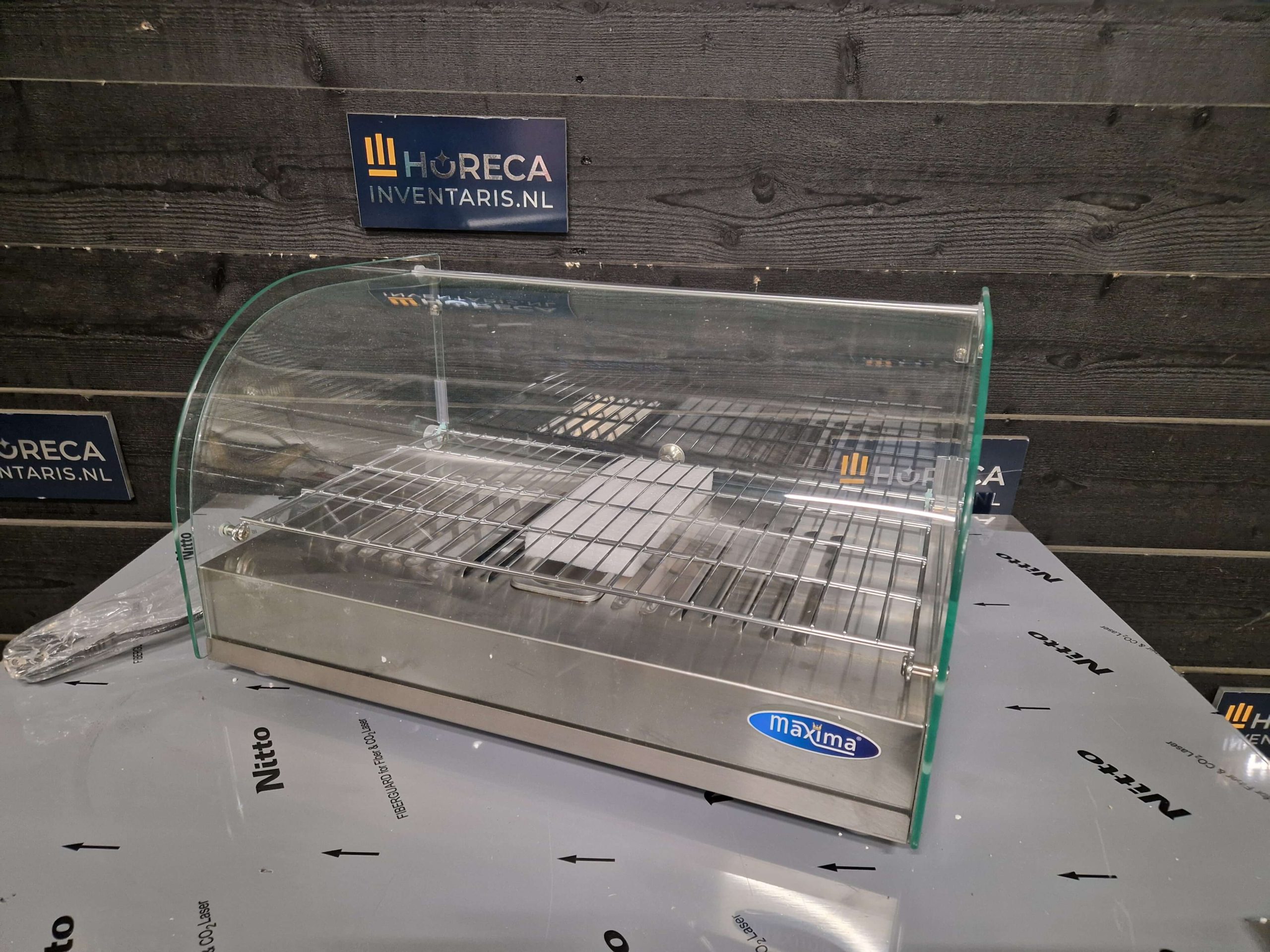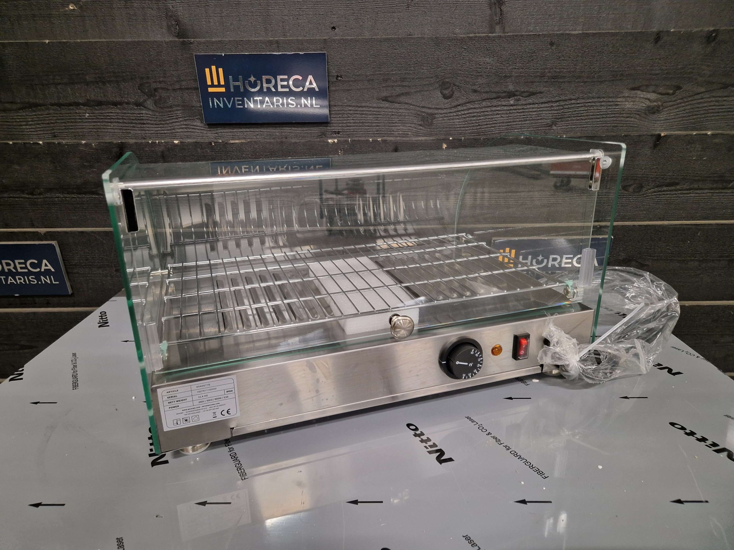 Presenteer warme snacks en broodjes op een professionele manier met deze stijlvolle warmhoudvitrine. De gebogen glazen ruit en het verchroomde rooster zorgen voor een mooie presentatie, terwijl de instelbare temperatuur van 30–90°C je producten perfect op temperatuur houdt.