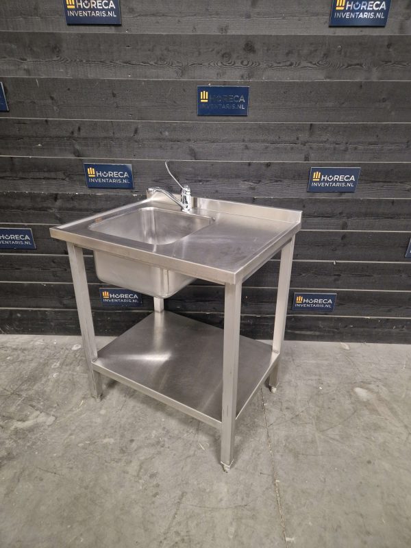 Met zijn compacte maar praktische afmetingen van 80 × 60 cm past deze RVS wastafel eenvoudig in uiteenlopende keukenindelingen. Een betrouwbare en onmisbare voorziening voor elke professionele keuken waar hygiëne vooropstaat.