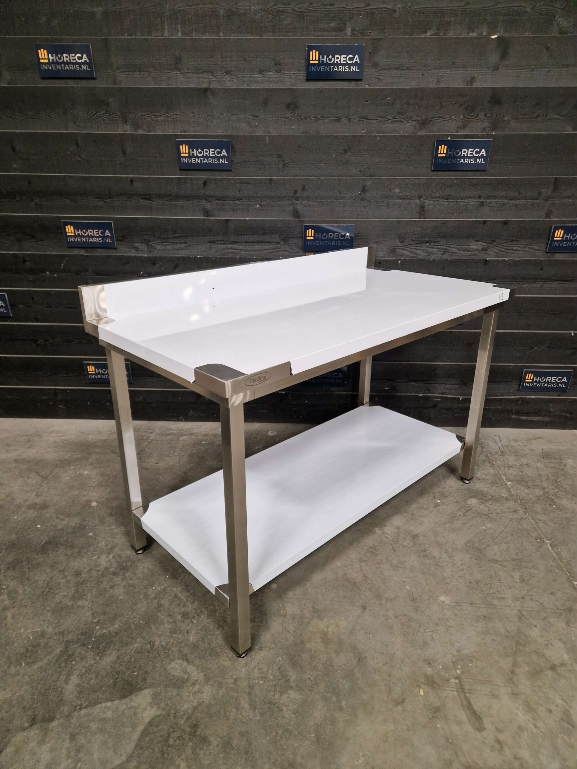 De tafel is voorzien van een praktische onderligger voor extra opbergruimte. Daarnaast beschikt het werkblad over een opstaande rand aan de achterzijde, wat helpt om spatten en vuil tegen te houden en te voorkomen dat items van de tafel vallen.