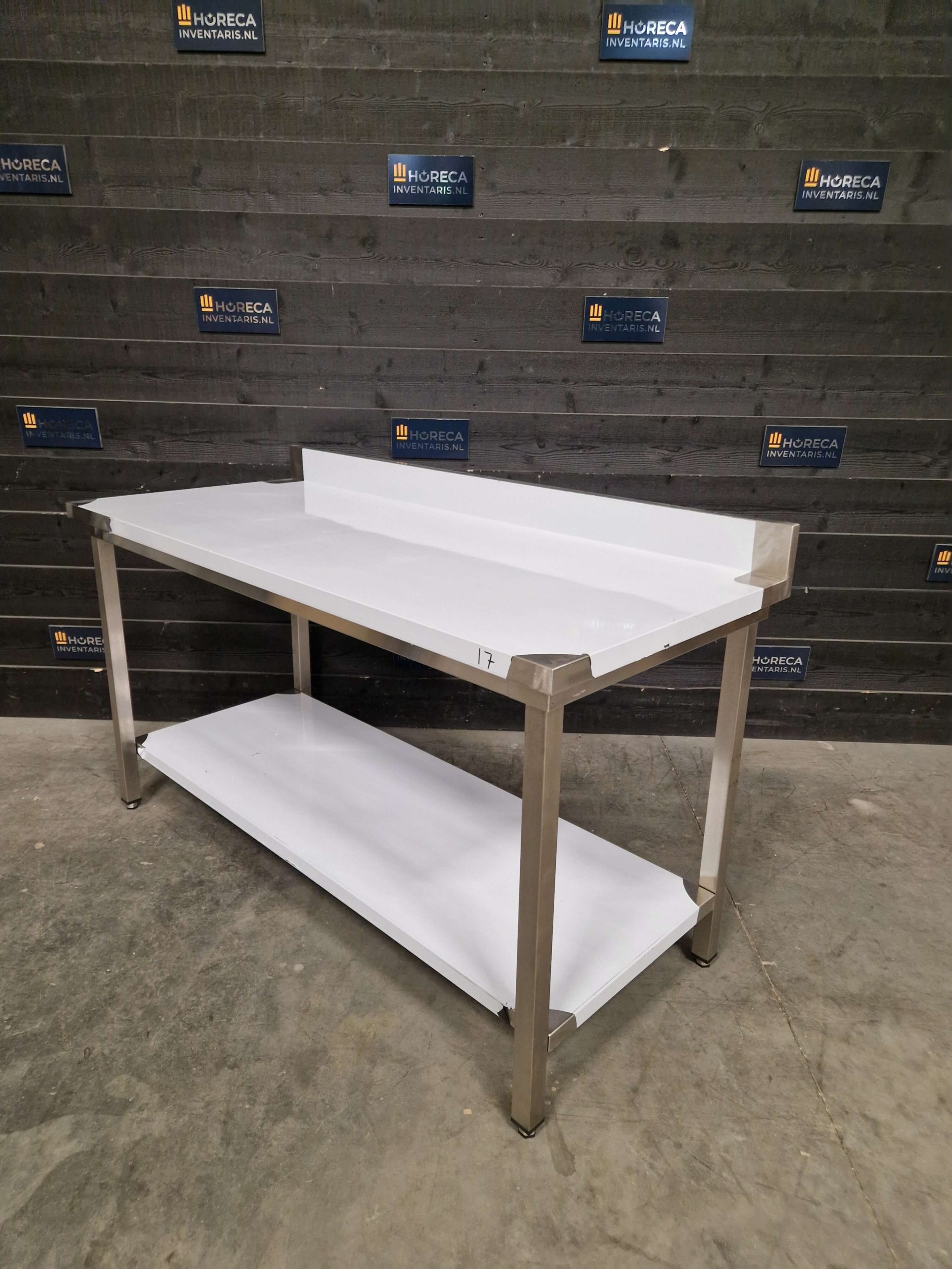 De tafel is voorzien van een praktische onderligger voor extra opbergruimte. Daarnaast beschikt het werkblad over een opstaande rand aan de achterzijde, wat helpt om spatten en vuil tegen te houden en te voorkomen dat items van de tafel vallen.