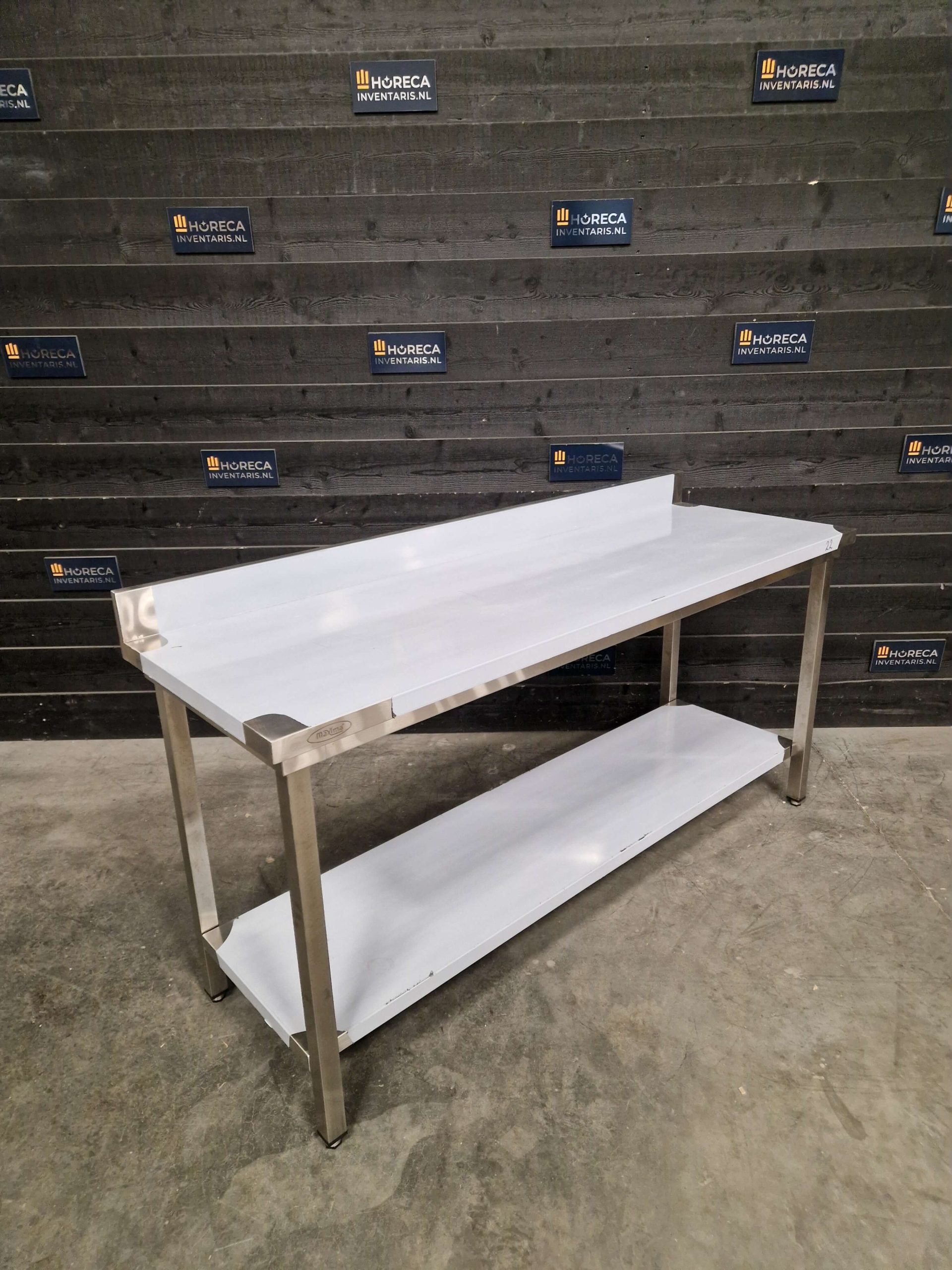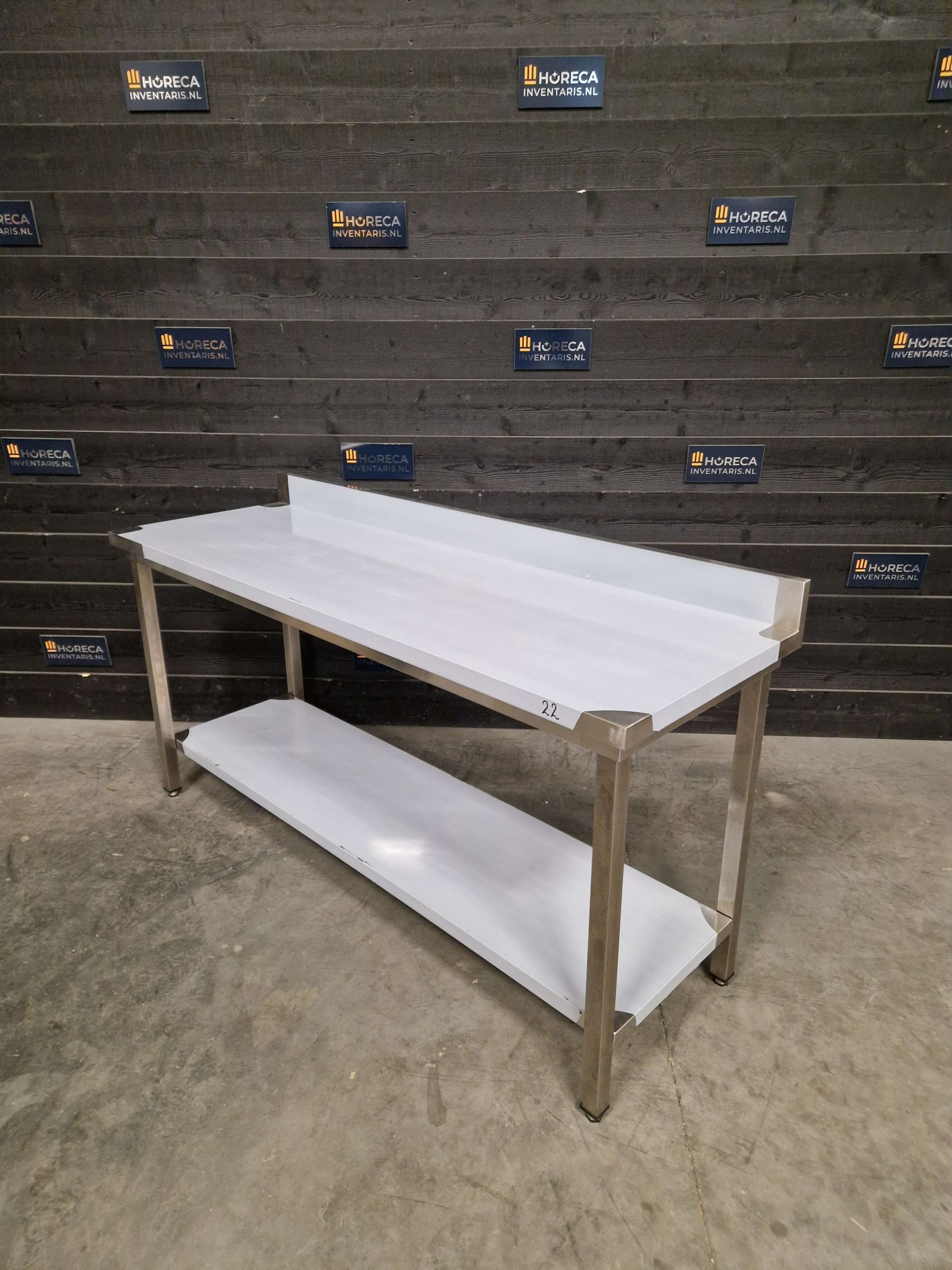 De tafel is voorzien van een praktische onderligger voor extra opbergruimte. Daarnaast beschikt het werkblad over een opstaande rand aan de achterzijde, wat helpt om spatten en vuil tegen te houden en te voorkomen dat items van de tafel vallen.