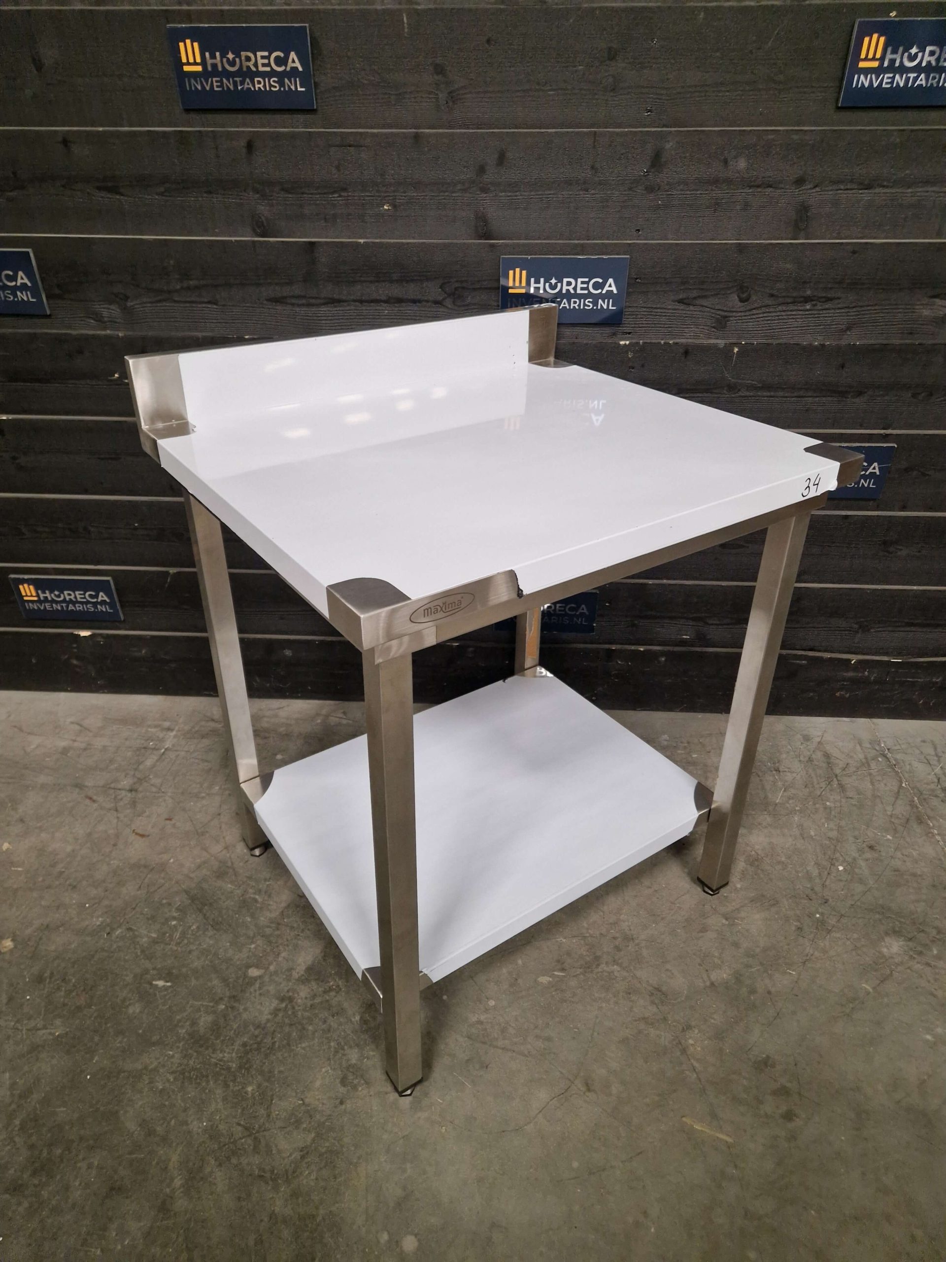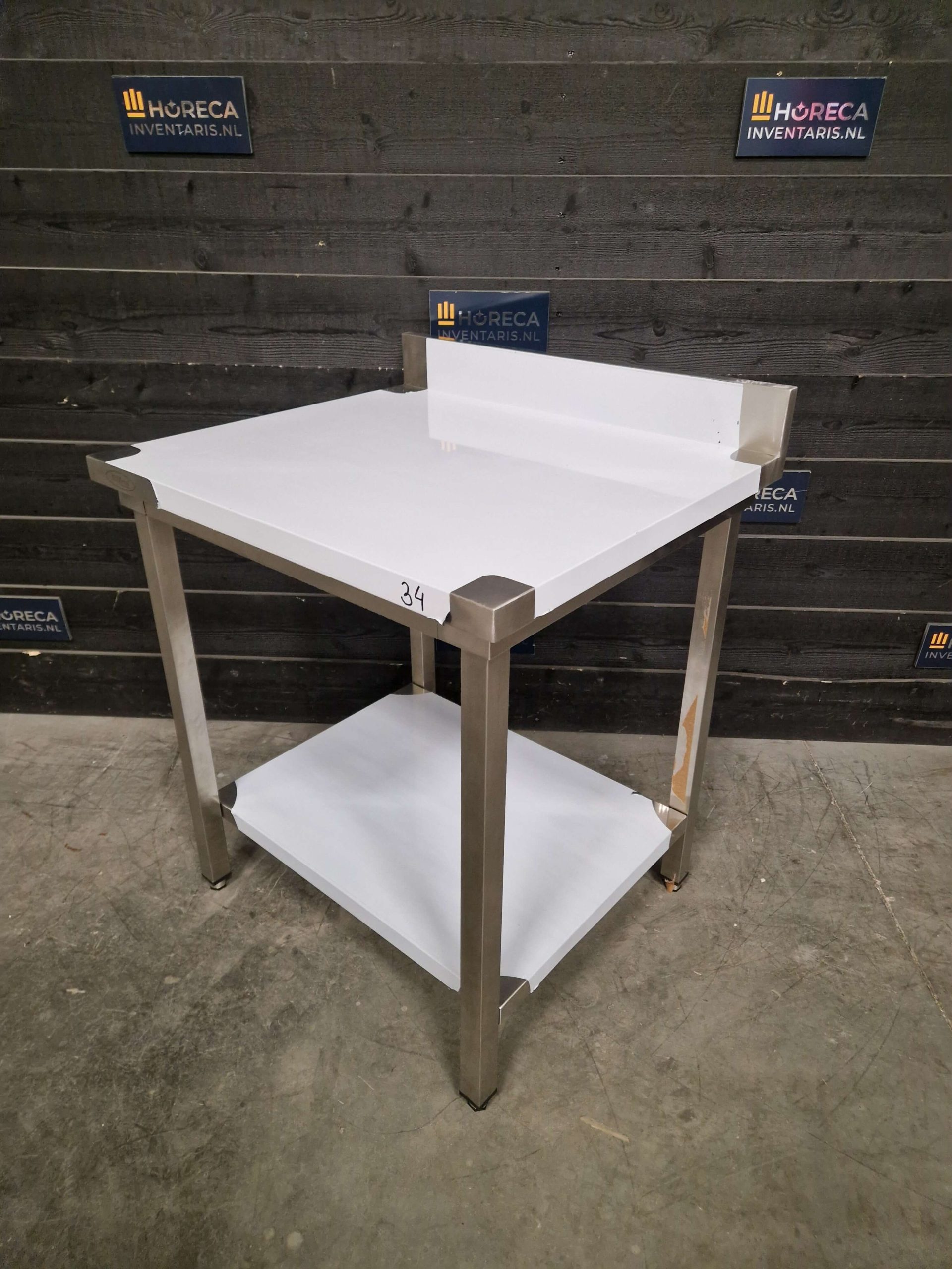 De tafel is voorzien van een praktische onderligger voor extra opbergruimte. Daarnaast beschikt het werkblad over een opstaande rand aan de achterzijde, wat helpt om spatten en vuil tegen te houden en te voorkomen dat items van de tafel vallen.
